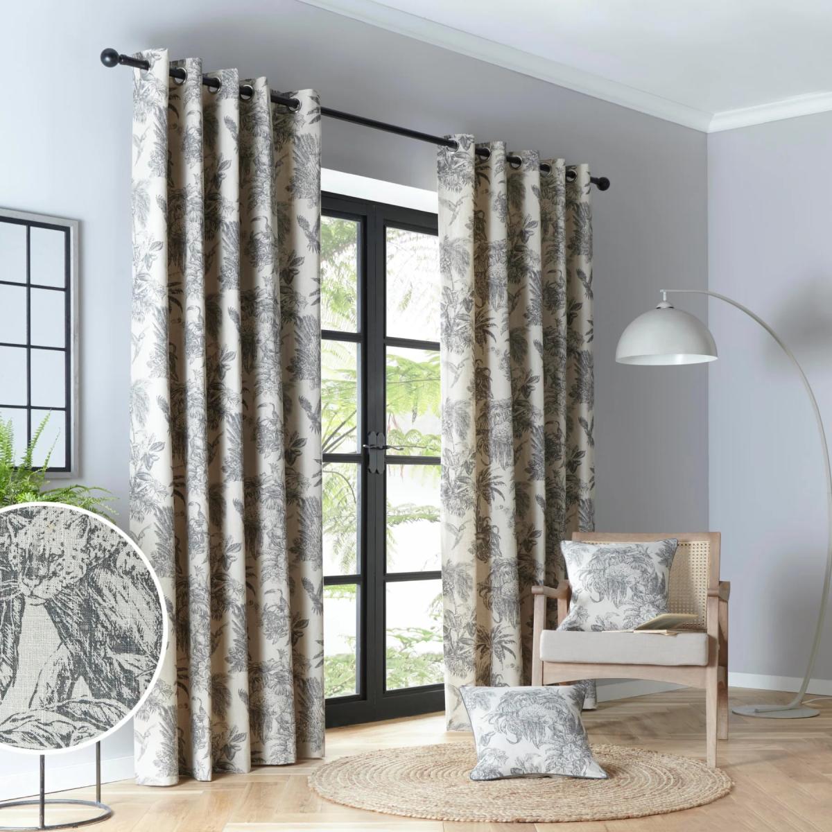 The Fusion Saranda are gorgeous, completely lined, cotton-linen-blend curtains have a tropical-inspired pattern that will look absolutely stunning in any interior decor. These curtains feature a ring top, eyelet heading that not only allows them to hang effortlessly, but also creates a beautiful drape. They are printed in a soft charcoal grey colour on a natural, linen-colored backdrop. 80% Cotton 20% Polyester Lining 100% Cotton Dry Clean only Lined Pair of Curtains Please note All screens vary in colour reproduction and whilst every effort has been made to display the colour as accurately as possible it is for guidance only.