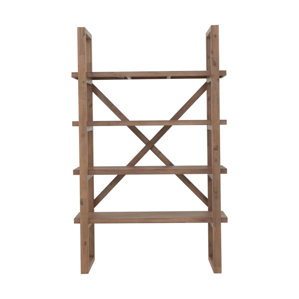 Sturdy and spacious, this contemporary industrial shelving unit is beautifully crafted from acacia wood with a gently rustic finish. Theres plenty of room for all your books and memorabilia on its four plank- like shelves. Why youll love it Great- value shelving unit with a very unique look. A contemporary twist on industrial style. Made from solid acacia wood Chunky square- edged ladder- style frame. 4 substantial planks form the shelves. Protective matt lacquer finish makes it easy to look after. Crafted with care. What you need to know Wood has natural markings, knots and colour variations. The Fusion range includes sideboards, TV units and occasional tables WARNING! Furniture can tip over unexpectedly and cause injury. This item shall be fixed to a wall using the anti- tip kit provided with the furniture. Be sure to use the correct wall fixings suitable for the walls in your home.