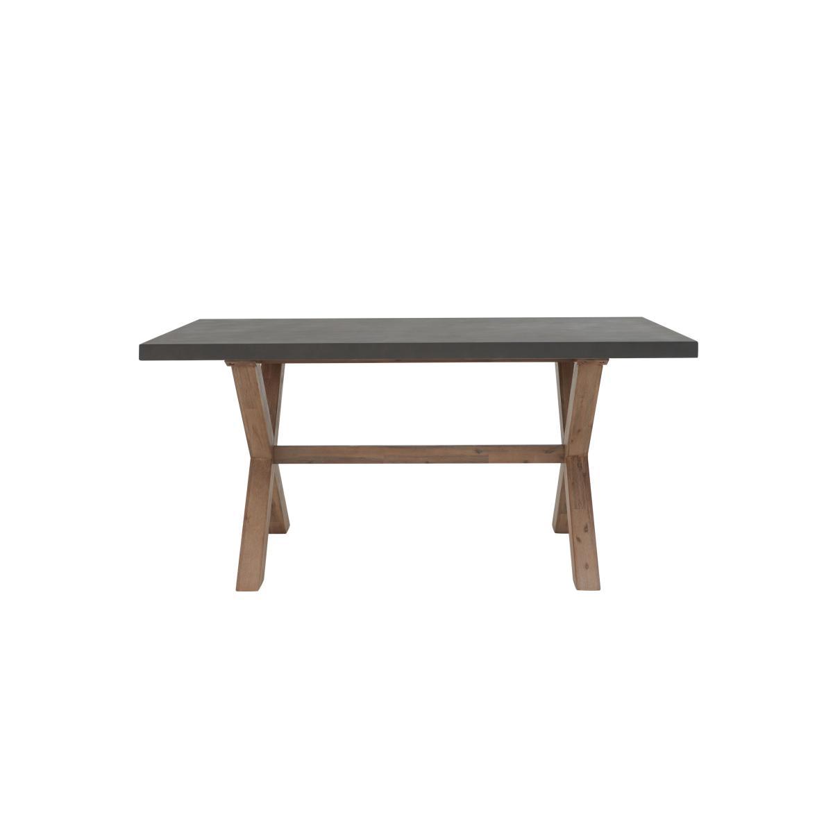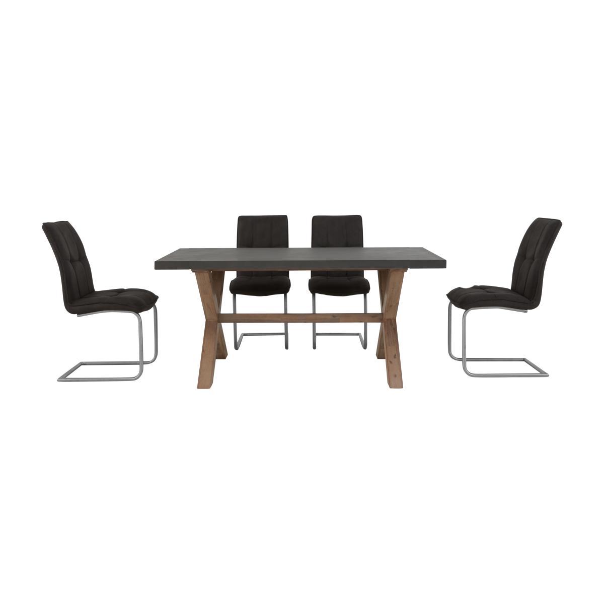 The aptly named Fusion collection of living room and dining room furniture melds two on-trend finishes – concrete and rustic wood – in a fabulous twist on modern industrial style. Pieces showcase eye-catching concrete tops, bold and chunky, juxtaposed with sturdy brushed acacia wood frames. This contemporary range includes dining tables, a dining chair and dining bench, occasional tables and storage pieces, and a wide choice of dining sets with versatile seating options. Cool, contemporary and incredible value. This small-space dining set delivers big dining style thanks to its fabulous concrete-topped dining table and four cool cantilever chairs. Contemporary industrial dining at a great-value price. Why you’ll love it. Great-value dining set with a very unique look. A contemporary twist on industrial style. Table has a chunky square-edged concrete top. Sturdy X-shaped trestle base in brushed acacia wood. Wood base has a protective matt lacquer finish so it’s easy to look after. Dining chairs have brushed steel cantilever bases and relaxed cushioning. Soft fabric upholstery with piped edges and buttoning. Chairs are exclusive to Furniture Village. What you need to know. Table base is solid acacia wood. Concrete top is fibre-reinforced for durability. Small dining table seats 6. Wood has natural markings, knots and colour variations. Concrete top may show some small imperfections. This dining table is heavy – please take care when moving it. Use coasters and placemats to protect the surface. Clean with dish soap and warm water, and dry immediately using a lint-free cloth. The Fusion range includes a huge choice of dining sets, sideboards and tables.