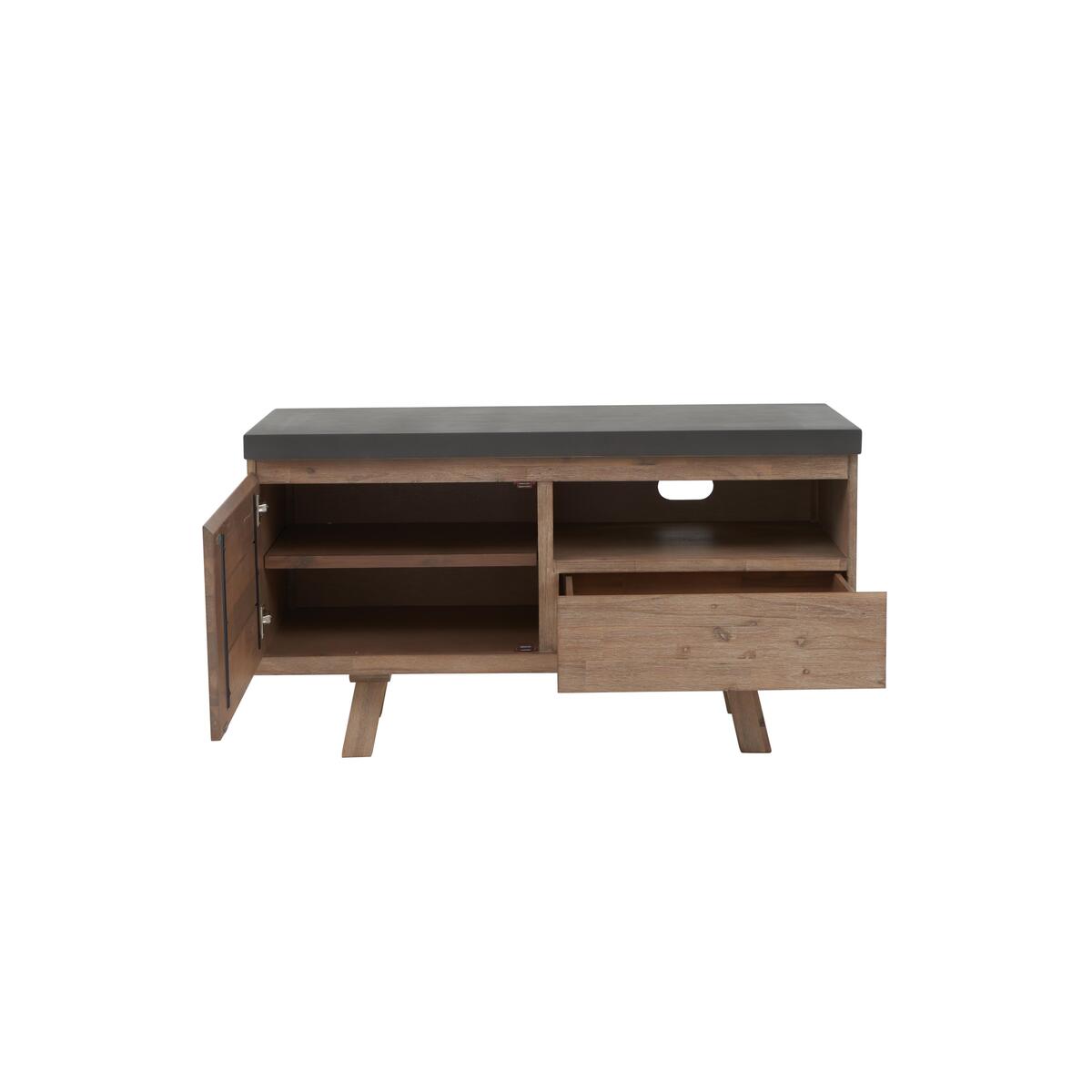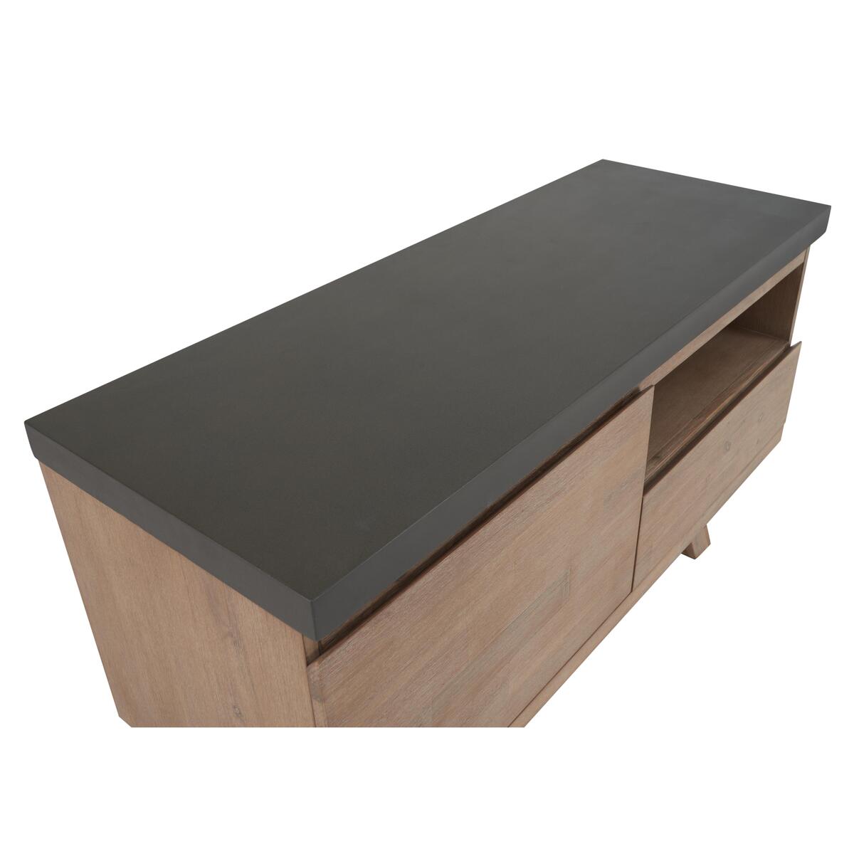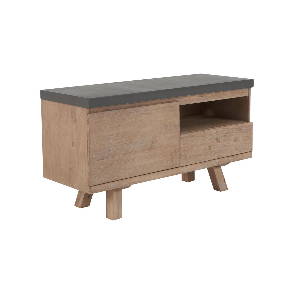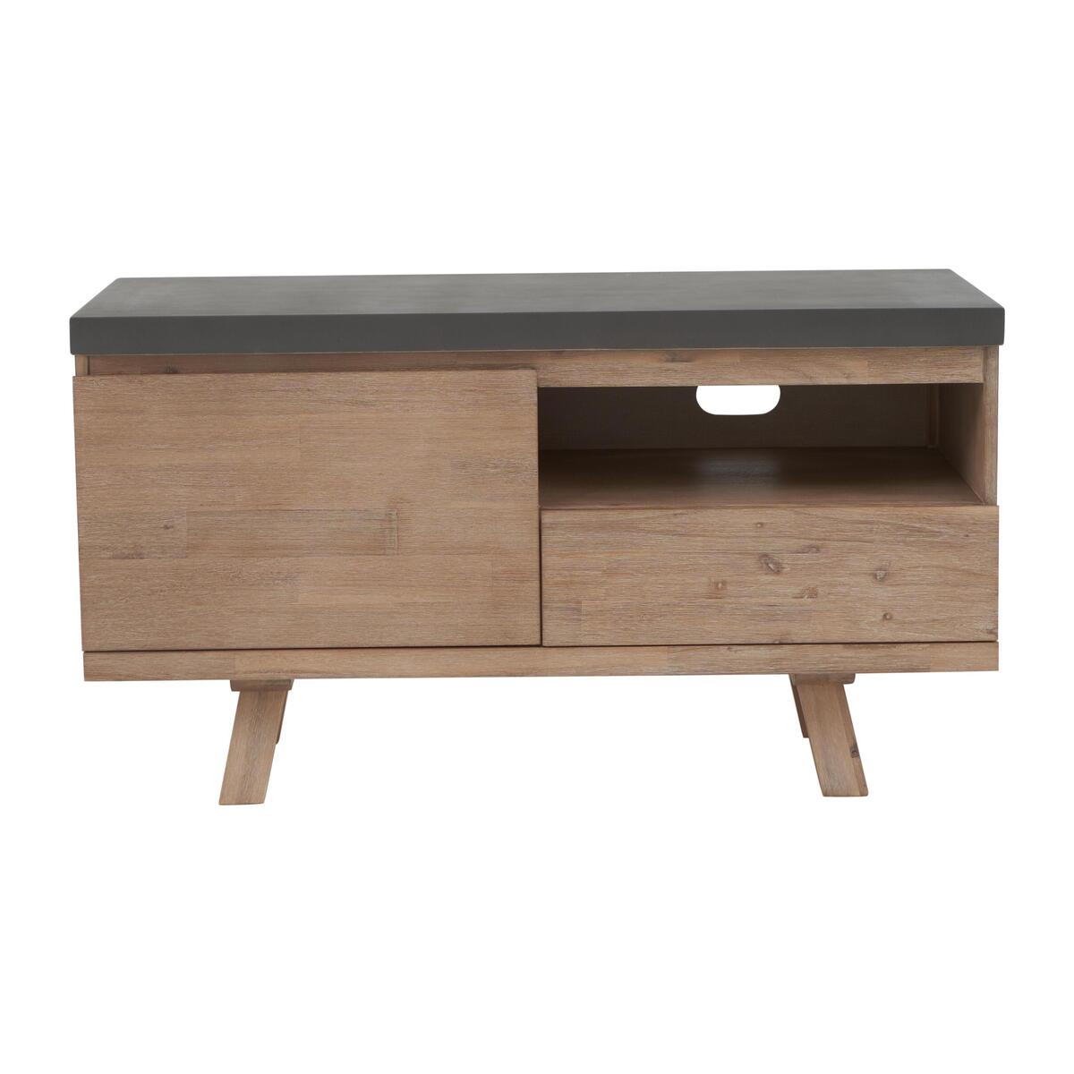 With its striking concrete top and overall cool industrial style, the Fusion small TV unit makes a big impact in any living space. Generous storage space makes it a very useful addition, too. Why youll love it Great- value TV cabinet with a very unique look. A contemporary twist on industrial style. Chunky square- edged concrete top. Gently rustic brushed acacia wood frame. Sturdy angled legs. Wood frame has a protective matt lacquer finish so its easy to look after. Crafted with care. What you need to know Made with solid acacia wood. Concrete top is fibre- reinforced for durability. 1 drawer, 1 alcove and 1 cupboard. Wood has natural markings, knots and colour variations. Concrete top may show some small imperfections. This piece is heavy please take care when moving it. Clean with dish soap and warm water, and dry immediately using a lint- free cloth. The Fusion range includes a larger TV unit, sideboards, dining sets and more.