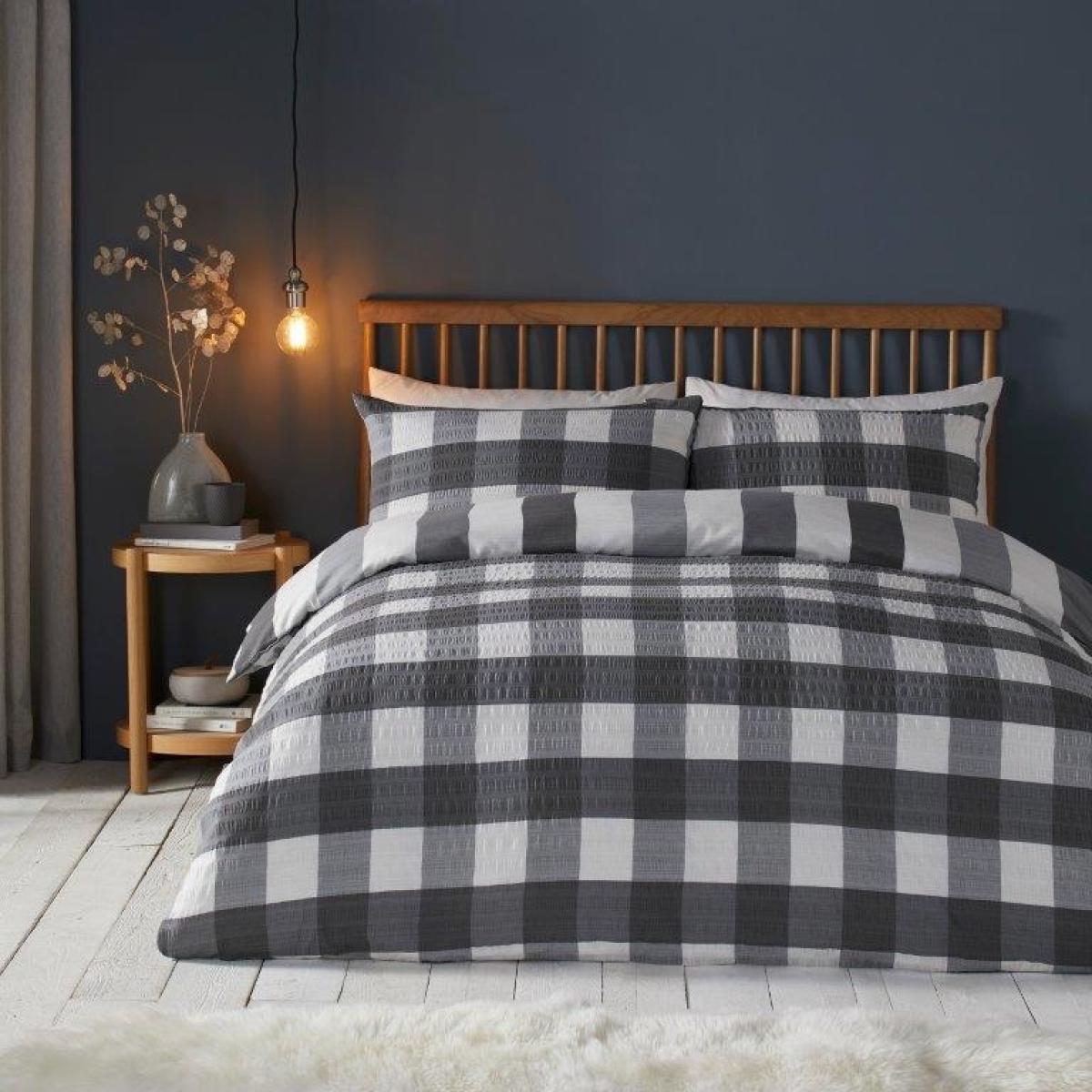 Fusion Snug Seersucker Brushed Gingham Check Charcoal Duvet Set - Double, Cotton