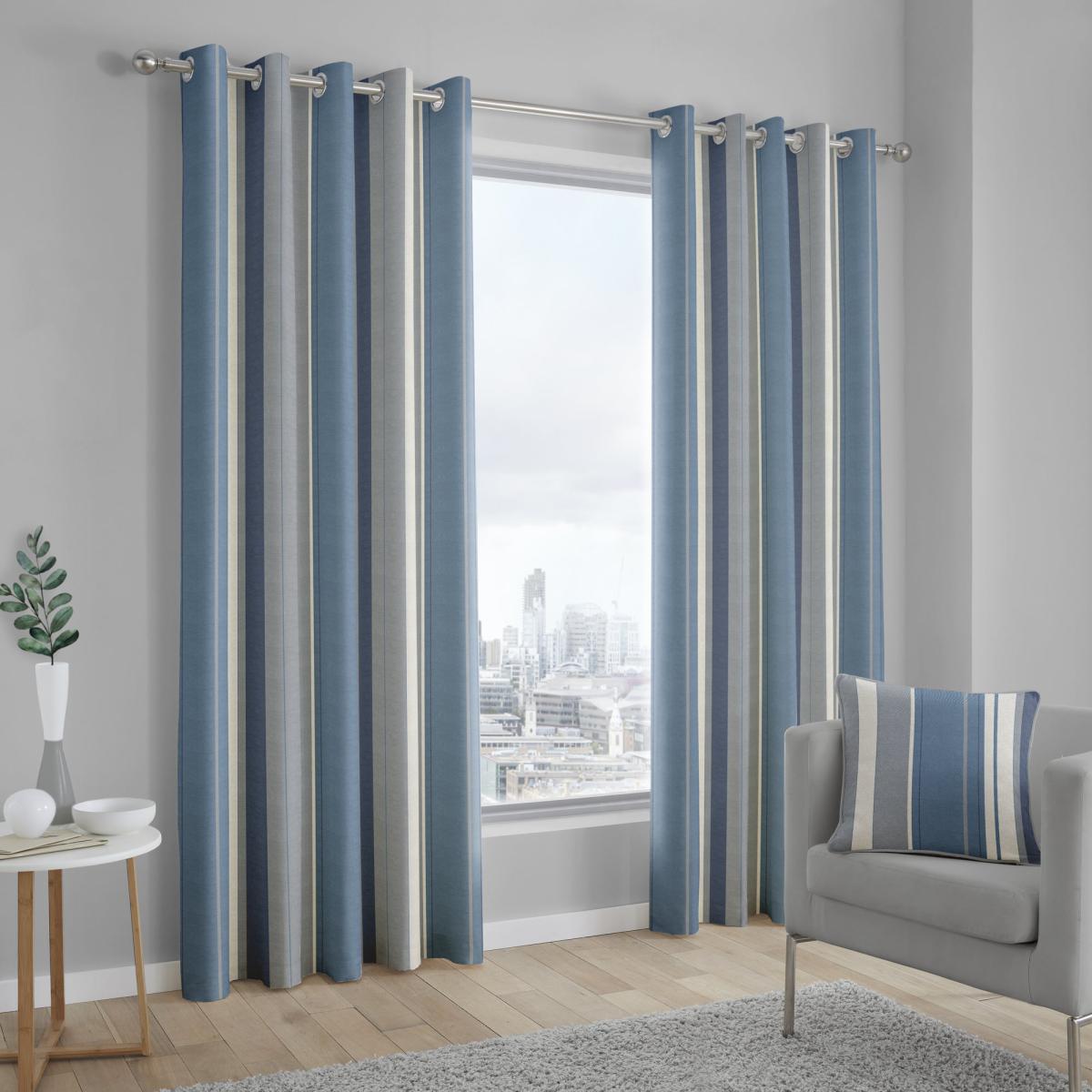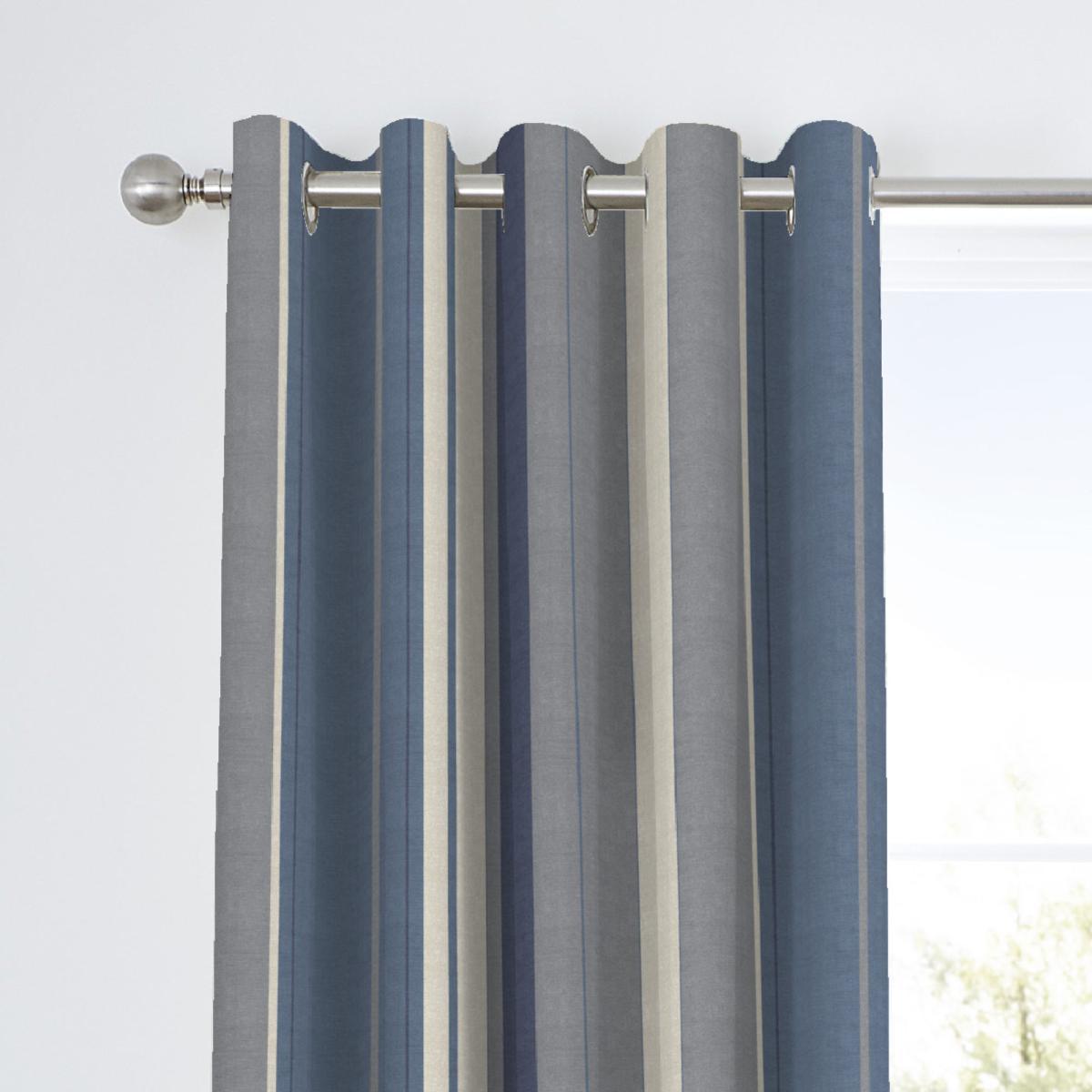 I love these curtains for their versatile colour palette and classic stripe pattern, making them easy to incorporate into various interior styles. The blue, grey and cream tones work particularly well in modern or nautical-inspired spaces, but also add a subtle sophistication to traditional or Scandinavian interiors. Practical styling tips include pairing them with neutral walls to let the pattern stand out, or layering with textured cushions and throws for a cosy feel. The eyelet design also makes them easy to hang and manipulate, which is a bonus for everyday practicality. Overall, they’re a stylish and flexible choice for bringing a fresh look to any room.
