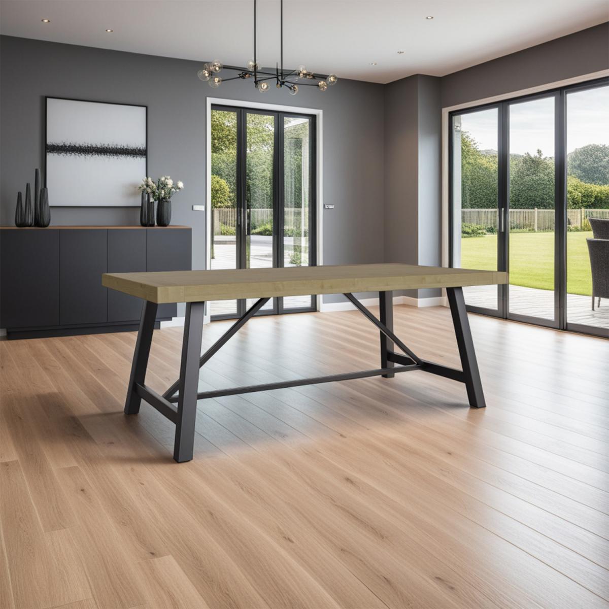 Introducing our 2.0. M Fixed Solid Pine Modern Dining Table, a stunning centerpiece that combines rustic charm with contemporary design. Crafted from driftwood lacquered finish pine, this table showcases the beauty of natural wood alongside modern elements, featuring a gunmetal grey powder-coated quad-bar steel base inspired by industrial styling. The blend of natural wood and sleek steel creates a captivating contrast, adding modern sophistication to your dining space. With a fixed length of 2.0 meters, it offers ample space for family gatherings and entertaining guests, while the solid pine top highlights the wood's character and imperfections, enhancing its rustic authenticity. The smooth lacquered finish provides a durable and easy-to-clean surface. Assembly is straightforward, with clear instructions and all necessary hardware included, allowing you to enjoy your new dining table in no time.