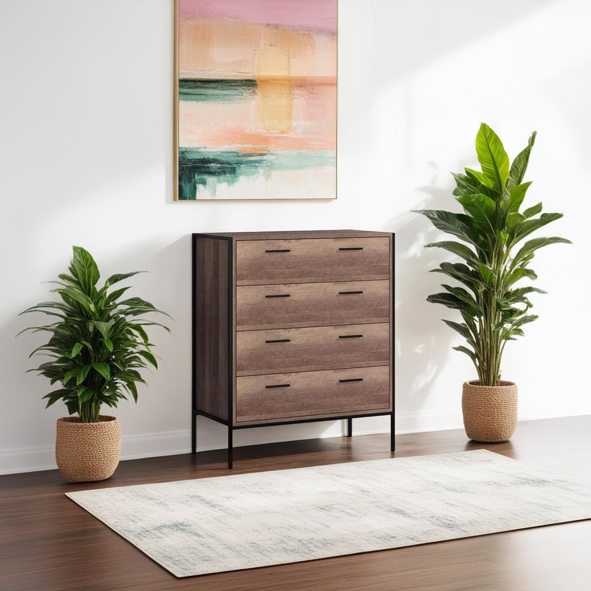 Elevate your bedroom decor with the FWStyle 4 Drawer Bedside Table, a stylish and versatile piece that combines industrial-inspired design with practical storage solutions. Crafted with a captivating industrial oak effect finish, this bedside table commands attention and enhances a modern bedroom aesthetic. Designed with meticulous attention to detail, it features robust construction for long-lasting performance and reliable storage for all your bedtime essentials. The four smooth-gliding drawers offer ample space for organizing books, electronics, and personal items, helping maintain a clutter-free nightstand. The industrial oak effect finish adds a contemporary touch, with subtle textures and warm tones creating a striking contrast against the clean, minimalist lines of the design, making it a truly unique and eye-catching addition to your space.