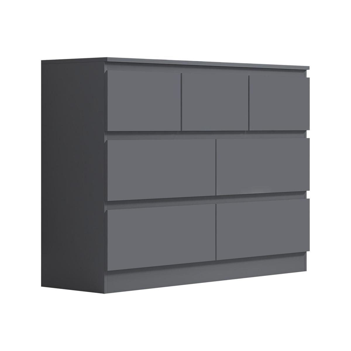 Understated and stylish, this Merchant Chest offers itself in beauty, practicality and an incredible storage solution. The Scandinavian meets modern style allows for a head-turning and versatile piece of hallway, living room and bedroom furniture. The easy-clean scratch-resistant melamine coating is a welcomed bonus allowing for nasty spills and scratches to be banished entirely and the easy-glide metal runners offer a smoother opening motion. Material: MDF Chipboard Colour:Matt Dark Grey Assembly Required:Yes Easy Assembly: Yes Dimensions W 106 x H 81 x D 40cm Drawer Depth - 14cm