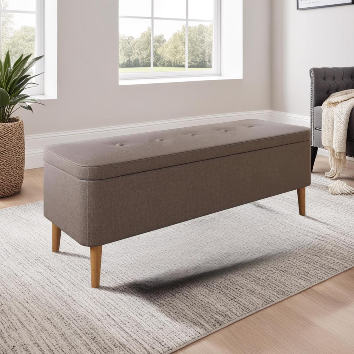 Introducing the FWStyle Padded Ottoman Storage Seat, a versatile and stylish piece that seamlessly combines storage functionality with plush comfort. Boasting a sophisticated Grey Upholstered finish, this ottoman adds a touch of elegance and modern flair to any living space. Crafted with exceptional attention to detail, the FWStyle Padded Ottoman Storage Seat features a sturdy and durable construction that ensures long-lasting performance. The padded top provides a comfortable surface for seating or as an extra footrest, while the spacious interior offers ample storage space for your everyday essentials, such as blankets, magazines, or even toys. The Grey Upholstered finish of this ottoman lends a timeless and sophisticated aesthetic to your living room, bedroom, or entryway. The neutral color palette and clean lines make it a versatile choice that complements a variety of decor styles, from contemporary to transitional. Designed with multi-functionality in mind, the FWStyle Padded Ottoman Storage Seat can serve as a stylish coffee table, extra seating, or a convenient storage solution, making it an indispensable addition to your home. Its compact and space-saving design ensures that it can be easily incorporated into both small and larger living spaces, providing both form and function.