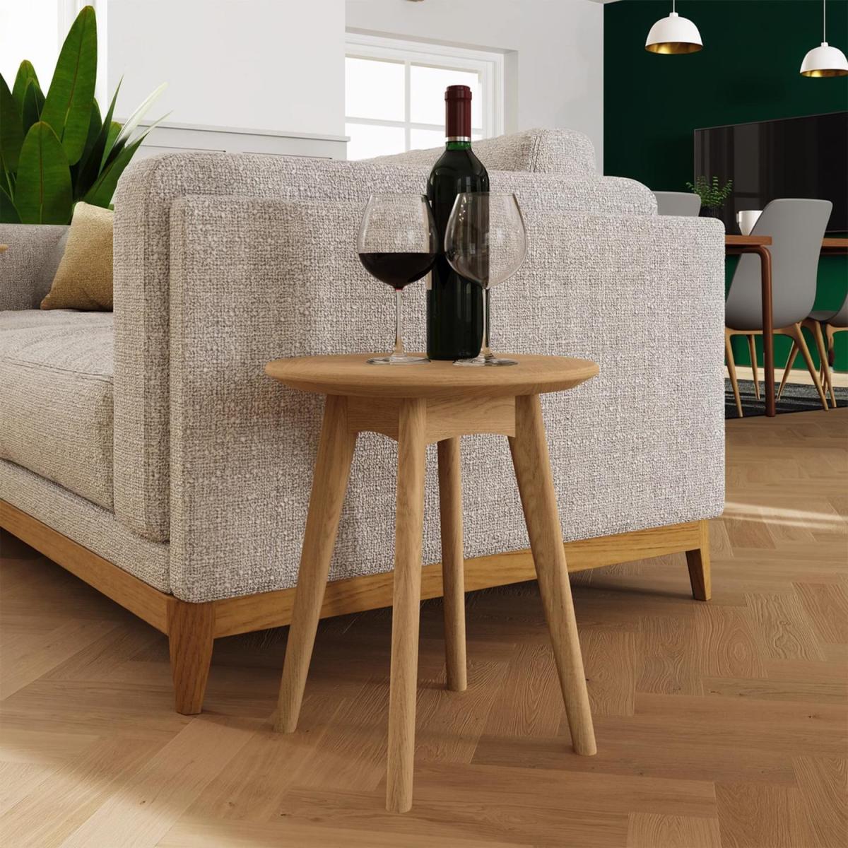 Introducing our charming Oakwood Side Table a perfect addition to your living space that combines style and practicality. This beautifully crafted table features a smooth round top made from high quality sustainable oak showcasing a natural finish that enhances the warmth of your home. Its simple yet elegant design with tapered legs provides stability while adding a touch of modern sophistication to any room. Ideal for holding drinks books or decorative items this versatile side table fits seamlessly beside your sofa or chair making it perfect for entertaining guests or enjoying a cozy evening at home. Its compact size allows for easy placement in any corner of your living area while providing ample surface space for your essentials. Elevate your home decor with the Oakwood Side Table designed to blend functionality and aesthetic appeal effortlessly.