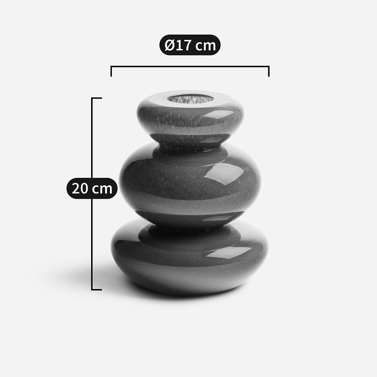 This hand-blown vase is a versatile piece that works beautifully in both contemporary and minimalist interiors. I love its sculptural form and subtle colour, which can add texture and interest without overwhelming a space. It’s perfect for showcasing a single, statement flower or a small arrangement of greenery, making it ideal for sideboards, console tables, or even bedside set-ups. When styling, consider placing it alongside neutral or matte surfaces to highlight its glossy finish, or pair it with other textured accessories for a more layered look. Its compact height also makes it suitable for smaller spaces or as part of a curated display with other decorative objects.