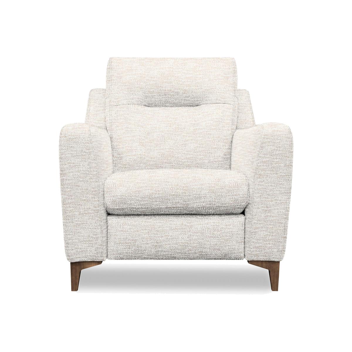 Exclusively handcrafted for us by G Plan, the Arlo range of sofas, chairs and footstools showcases both style and comfort. You’ll recognise iconic G Plan design in those wide arms, elegant wood legs and chrome-finished swivel bases, and you’ll love the range’s approach to comfort with its high backs, sprung seats and premium cushioning. Arlo is also a perfect fit for modern interiors. Wall-away recliners save space, power recliner options come with USB charging points and footstools double as extra seats or even occasional tables. Available in 100% leather and fabric upholstery in G Plan’s entire swatch book, it's easy to make your G Plan Arlo sofa or chair truly your own. Meet your new power recliner armchair. Handmade by G Plan and exclusive to Furniture Village, it’s available in a huge choice of fabrics and colours. Why you'll love it Recline the G Plan way with this lovely fabric power recliner chair. G Plan style and comfort – only at Furniture Village. Modern off-the-floor design with wide arms. Space-saving wall-away power recliner eases you into relaxation. Superb high-back support and comfort. Offered in every fabric in the G Plan swatch book. Wood feet in a choice of walnut and ebony. USB port for easy phone charging. Also available in 100% leather and without the recliner. Handcrafted by G Plan in the UK exclusively for Furniture Village. This fabric power recliner chair is part of our G Plan Arlo range. What you need to know Medium comfort level. Seat suspension: springs. Seat cushioning: foam. Seat cushion is fixed. Back suspension: webbing. Back cushioning: premium fibre. Back cushion is fixed. Feet are removable. USB charging is only available with the power version of this chair. Please allow time for new recliners to ease. Minor gaps are necessary to ensure ease of recliner motion and may be exaggerated depending on floor type. Some fabrics can show wear on areas of more use or in direct sunlight. Clean regularly using a soft brush or vacuum with the curtain attachment. Deal with any spills promptly. Professional cleaning advised for oil- and grease-based stains. Please read our upholstery care guide for more advice.