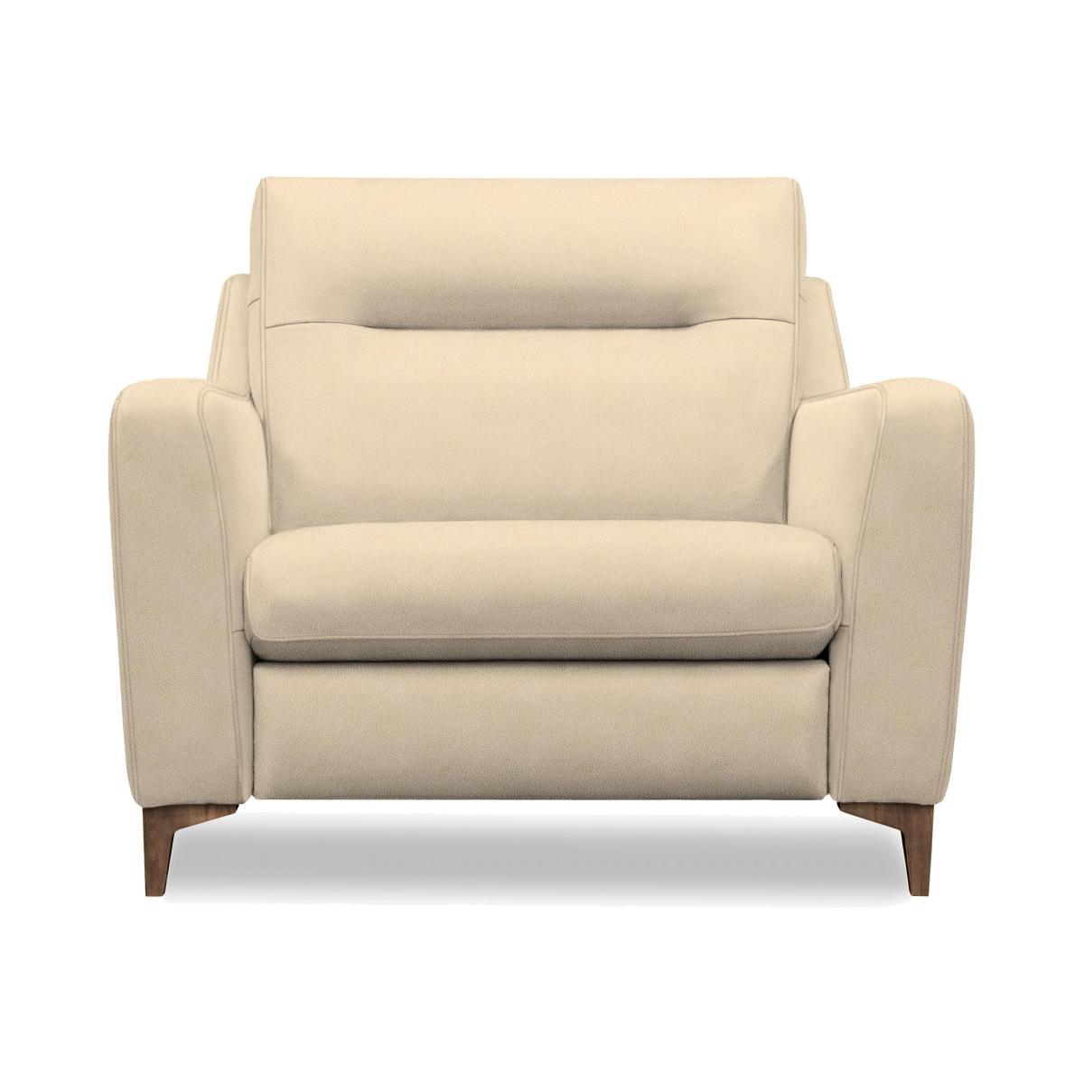 Exclusively handcrafted for us by G Plan, the Arlo range of sofas, chairs and footstools showcases both style and comfort. You’ll recognise iconic G Plan design in those wide arms, elegant wood legs and chrome-finished swivel bases, and you’ll love the range’s approach to comfort with its high backs, sprung seats and premium cushioning. Arlo is also a perfect fit for modern interiors. Wall-away recliners save space, power recliner options come with USB charging points and footstools double as extra seats or even occasional tables. Available in 100% leather and fabric upholstery in G Plan’s entire swatch book, it's easy to make your G Plan Arlo sofa or chair truly your own. Snuggle in style or stretch out in solo comfort. Seating two, this beautiful fabric recliner snuggler chair is handmade by G Plan exclusively for Furniture Village. Why you'll love it Share this reclining snuggler chair with a friend or keep it for yourself. G Plan style and comfort – only at Furniture Village. Modern off-the-floor design with wide arms. Space-saving wall-away power recliner eases you into relaxation. Superb high-back support and comfort. Offered in every fabric in the G Plan swatch book. Wood feet in a choice of walnut and ebony. USB port for easy phone charging. Also available in 100% leather and without the recliner. Handcrafted by G Plan in the UK exclusively for Furniture Village. This fabric power recliner snuggler chair is part of our G Plan Arlo range. What you need to know Medium comfort level. Seat suspension: springs. Seat cushioning: foam. Seat cushions are fixed. Back suspension: webbing. Back cushioning: premium fibre. Back cushions are fixed. Feet are removable. USB charging is only available with the power version of this chair. Please allow time for new recliners to ease. Minor gaps are necessary to ensure ease of recliner motion and may be exaggerated depending on floor type. Some fabrics can show wear on areas of more use or in direct sunlight. Clean regularly using a soft brush or vacuum with the curtain attachment. Deal with any spills promptly. Professional cleaning advised for oil- and grease-based stains. Please read our upholstery care guide for more advice.