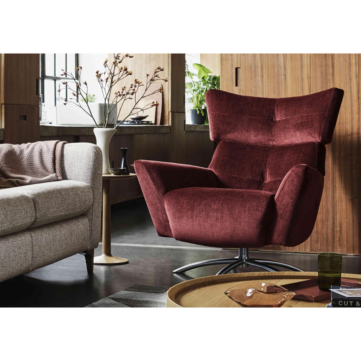 Exclusively handcrafted for us by G Plan, the Arlo range of sofas, chairs and footstools showcases both style and comfort. You’ll recognise iconic G Plan design in those wide arms, elegant wood legs and chrome-finished swivel bases, and you’ll love the range’s approach to comfort with its high backs, sprung seats and premium cushioning. Arlo is also a perfect fit for modern interiors. Wall-away recliners save space, power recliner options come with USB charging points and footstools double as extra seats or even occasional tables. Available in 100% leather and fabric upholstery in G Plan’s entire swatch book, it's easy to make your G Plan Arlo sofa or chair truly your own. Love G Plan’s iconic mid-century style? You’ll love our exclusive G Plan Arlo swivel chair. It’s available in a huge range of upholstery fabrics. Why you'll love it Eye-catching style meets classic comfort in this fabric swivel chair G Plan style and comfort – only at Furniture Village. Superb high-back support with bold angled arms and headrest. Brushed chrome swivel base. Offered in every fabric in the G Plan swatch book. Also available in 100% leather. Handcrafted by G Plan in the UK exclusively for Furniture Village. This fabric swivel chair is part of our G Plan Arlo range. What you need to know Medium comfort level. Seat suspension: springs. Seat cushioning: foam. Seat cushion is fixed. Back suspension: webbing. Back cushioning: premium fibre. Back cushion is fixed. Some fabrics can show wear on areas of more use or in direct sunlight. Clean regularly using a soft brush or vacuum with the curtain attachment. Deal with any spills promptly. Professional cleaning advised for oil- and grease-based stains. Please read our upholstery care guide for more advice.