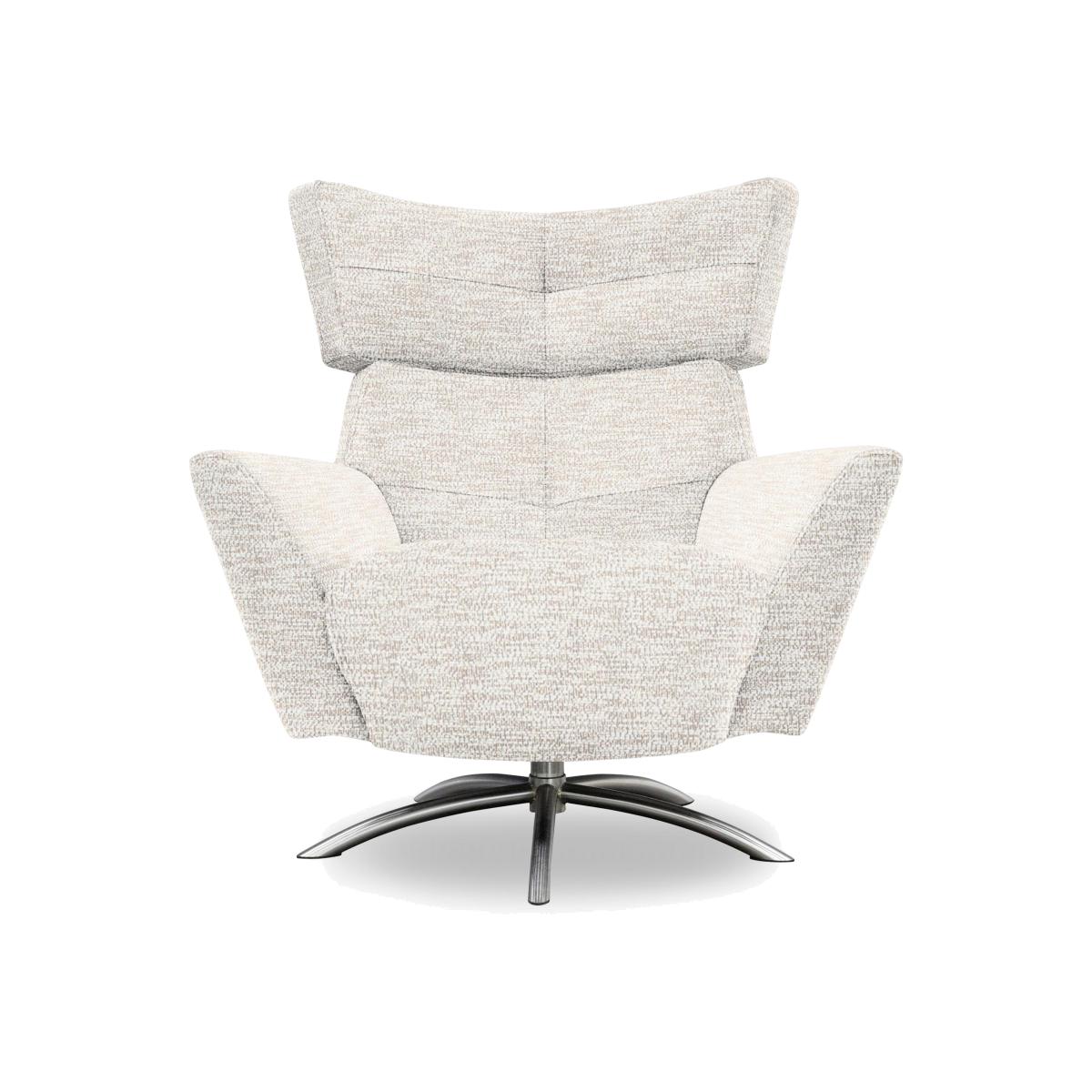 Exclusively handcrafted for us by G Plan, the Arlo range of sofas, chairs and footstools showcases both style and comfort. You’ll recognise iconic G Plan design in those wide arms, elegant wood legs and chrome-finished swivel bases, and you’ll love the range’s approach to comfort with its high backs, sprung seats and premium cushioning. Arlo is also a perfect fit for modern interiors. Wall-away recliners save space, power recliner options come with USB charging points and footstools double as extra seats or even occasional tables. Available in 100% leather and fabric upholstery in G Plan’s entire swatch book, it's easy to make your G Plan Arlo sofa or chair truly your own. Love G Plan’s iconic mid-century style? You’ll love our exclusive G Plan Arlo swivel chair. It’s available in a huge range of upholstery fabrics. Why you'll love it Eye-catching style meets classic comfort in this fabric swivel chair G Plan style and comfort – only at Furniture Village. Superb high-back support with bold angled arms and headrest. Brushed chrome swivel base. Offered in every fabric in the G Plan swatch book. Also available in 100% leather. Handcrafted by G Plan in the UK exclusively for Furniture Village. This fabric swivel chair is part of our G Plan Arlo range. What you need to know Medium comfort level. Seat suspension: springs. Seat cushioning: foam. Seat cushion is fixed. Back suspension: webbing. Back cushioning: premium fibre. Back cushion is fixed. Some fabrics can show wear on areas of more use or in direct sunlight. Clean regularly using a soft brush or vacuum with the curtain attachment. Deal with any spills promptly. Professional cleaning advised for oil- and grease-based stains. Please read our upholstery care guide for more advice.