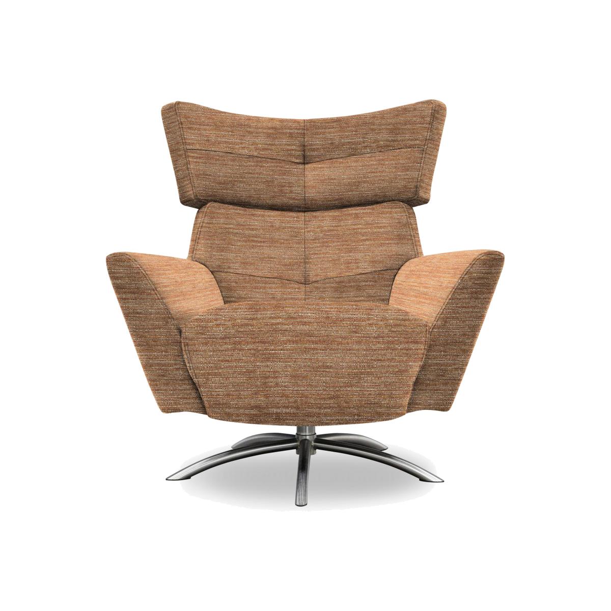Exclusively handcrafted for us by G Plan, the Arlo range of sofas, chairs and footstools showcases both style and comfort. You’ll recognise iconic G Plan design in those wide arms, elegant wood legs and chrome-finished swivel bases, and you’ll love the range’s approach to comfort with its high backs, sprung seats and premium cushioning. Arlo is also a perfect fit for modern interiors. Wall-away recliners save space, power recliner options come with USB charging points and footstools double as extra seats or even occasional tables. Available in 100% leather and fabric upholstery in G Plan’s entire swatch book, it's easy to make your G Plan Arlo sofa or chair truly your own. Love G Plan’s iconic mid-century style? You’ll love our exclusive G Plan Arlo swivel chair. It’s available in a huge range of upholstery fabrics. Why you'll love it Eye-catching style meets classic comfort in this fabric swivel chair G Plan style and comfort – only at Furniture Village. Superb high-back support with bold angled arms and headrest. Brushed chrome swivel base. Offered in every fabric in the G Plan swatch book. Also available in 100% leather. Handcrafted by G Plan in the UK exclusively for Furniture Village. This fabric swivel chair is part of our G Plan Arlo range. What you need to know Medium comfort level. Seat suspension: springs. Seat cushioning: foam. Seat cushion is fixed. Back suspension: webbing. Back cushioning: premium fibre. Back cushion is fixed. Some fabrics can show wear on areas of more use or in direct sunlight. Clean regularly using a soft brush or vacuum with the curtain attachment. Deal with any spills promptly. Professional cleaning advised for oil- and grease-based stains. Please read our upholstery care guide for more advice.