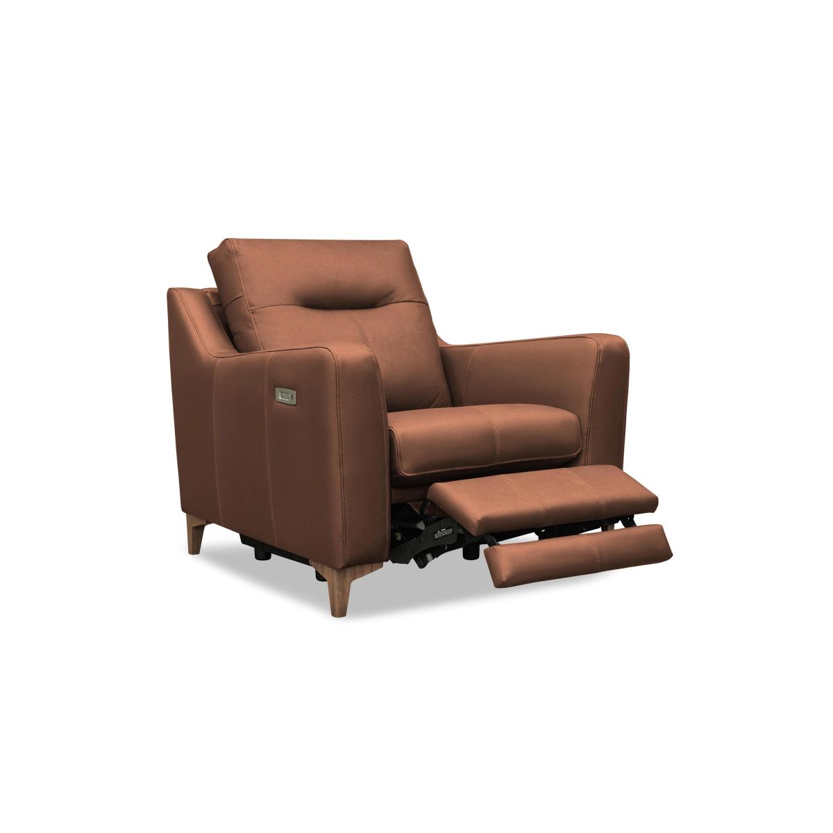 Exclusively handcrafted for us by G Plan, the Arlo range of sofas, chairs and footstools showcases both style and comfort. You’ll recognise iconic G Plan design in those wide arms, elegant wood legs and chrome-finished swivel bases, and you’ll love the range’s approach to comfort with its high backs, sprung seats and premium cushioning. Arlo is also a perfect fit for modern interiors. Wall-away recliners save space, power recliner options come with USB charging points and footstools double as extra seats or even occasional tables. Available in 100% leather and fabric upholstery in G Plan’s entire swatch book, it's easy to make your G Plan Arlo sofa or chair truly your own. This roomy leather G Plan snuggler chair seats two in cosy comfort. Want to keep its power recliner and soft leather upholstery to yourself? We won’t tell. Why you'll love it There’s room for two on this leather power recliner snuggler chair. G Plan style and comfort – only at Furniture Village. Modern off-the-floor design with wide arms. Space-saving wall-away power recliner eases you into relaxation. Superb high-back support and comfort. The 100% leather upholstery is available in the entire G Plan swatch book. Wood feet in a choice of walnut and ebony. USB port for easy phone charging. Also available without the recliner. Handcrafted by G Plan in the UK exclusively for Furniture Village. This leather power recliner snuggler chair is part of our G Plan Arlo range. What you need to know Medium comfort level. Seat suspension: springs. Seat cushioning: foam. Seat cushions are fixed. Back suspension: webbing. Back cushioning: premium fibre. Back cushions are fixed. Feet are removable. USB charging is only available with the power version of this chair. Please allow time for new recliners to ease. Minor gaps are necessary to ensure ease of recliner motion and may be exaggerated depending on floor type. Leather has unique marks and characteristics with variation in colour and texture. Leather softens with use. Smoothing the tops of leather cushions prevents signs of visual comfort. Please read our upholstery care guide for more advice.