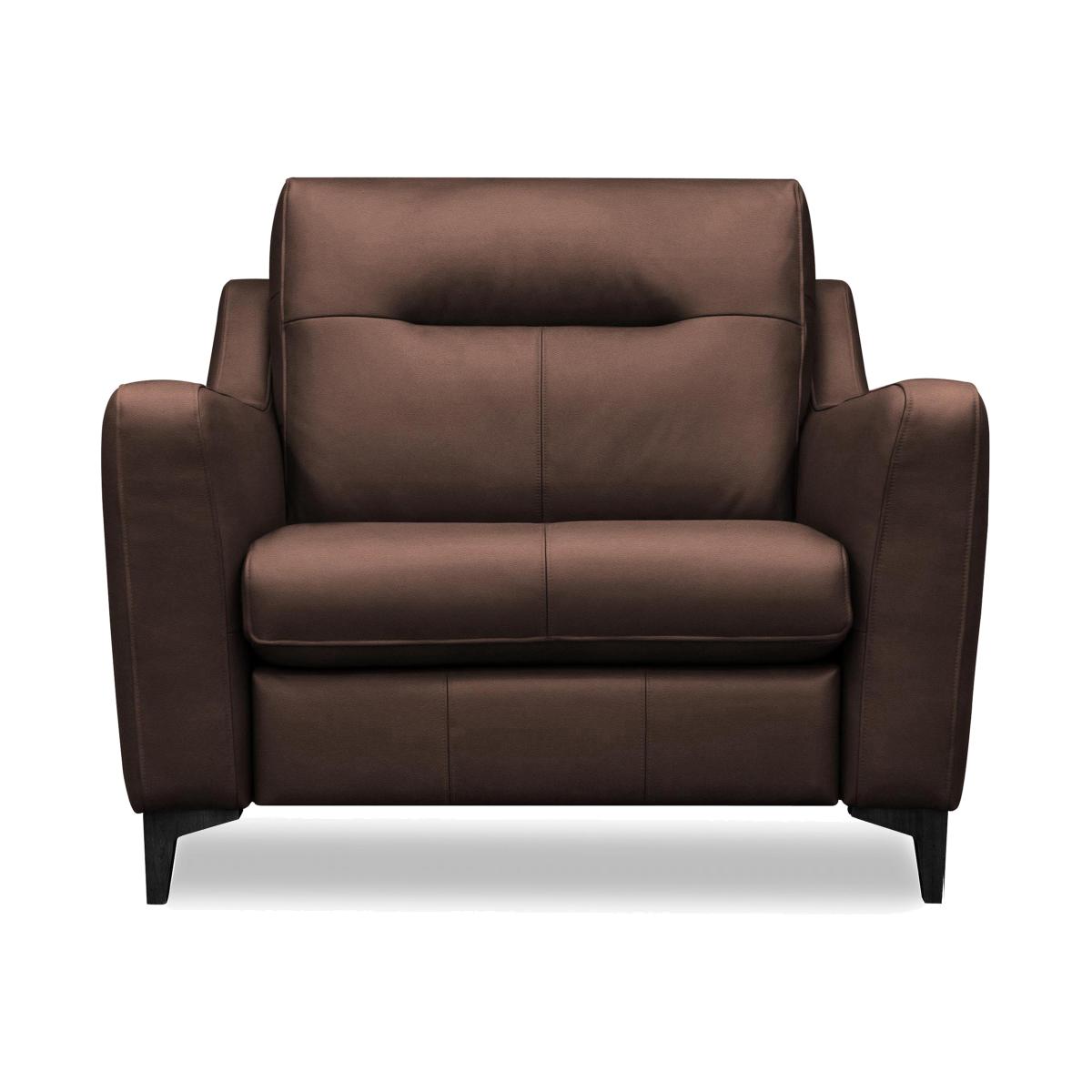 Exclusively handcrafted for us by G Plan, the Arlo range of sofas, chairs and footstools showcases both style and comfort. You’ll recognise iconic G Plan design in those wide arms, elegant wood legs and chrome-finished swivel bases, and you’ll love the range’s approach to comfort with its high backs, sprung seats and premium cushioning. Arlo is also a perfect fit for modern interiors. Wall-away recliners save space, power recliner options come with USB charging points and footstools double as extra seats or even occasional tables. Available in 100% leather and fabric upholstery in G Plan’s entire swatch book, it's easy to make your G Plan Arlo sofa or chair truly your own. This roomy leather G Plan snuggler chair seats two in cosy comfort. Want to keep its power recliner and soft leather upholstery to yourself? We won’t tell. Why you'll love it There’s room for two on this leather power recliner snuggler chair. G Plan style and comfort – only at Furniture Village. Modern off-the-floor design with wide arms. Space-saving wall-away power recliner eases you into relaxation. Superb high-back support and comfort. The 100% leather upholstery is available in the entire G Plan swatch book. Wood feet in a choice of walnut and ebony. USB port for easy phone charging. Also available without the recliner. Handcrafted by G Plan in the UK exclusively for Furniture Village. This leather power recliner snuggler chair is part of our G Plan Arlo range. What you need to know Medium comfort level. Seat suspension: springs. Seat cushioning: foam. Seat cushions are fixed. Back suspension: webbing. Back cushioning: premium fibre. Back cushions are fixed. Feet are removable. USB charging is only available with the power version of this chair. Please allow time for new recliners to ease. Minor gaps are necessary to ensure ease of recliner motion and may be exaggerated depending on floor type. Leather has unique marks and characteristics with variation in colour and texture. Leather softens with use. Smoothing the tops of leather cushions prevents signs of visual comfort. Please read our upholstery care guide for more advice.