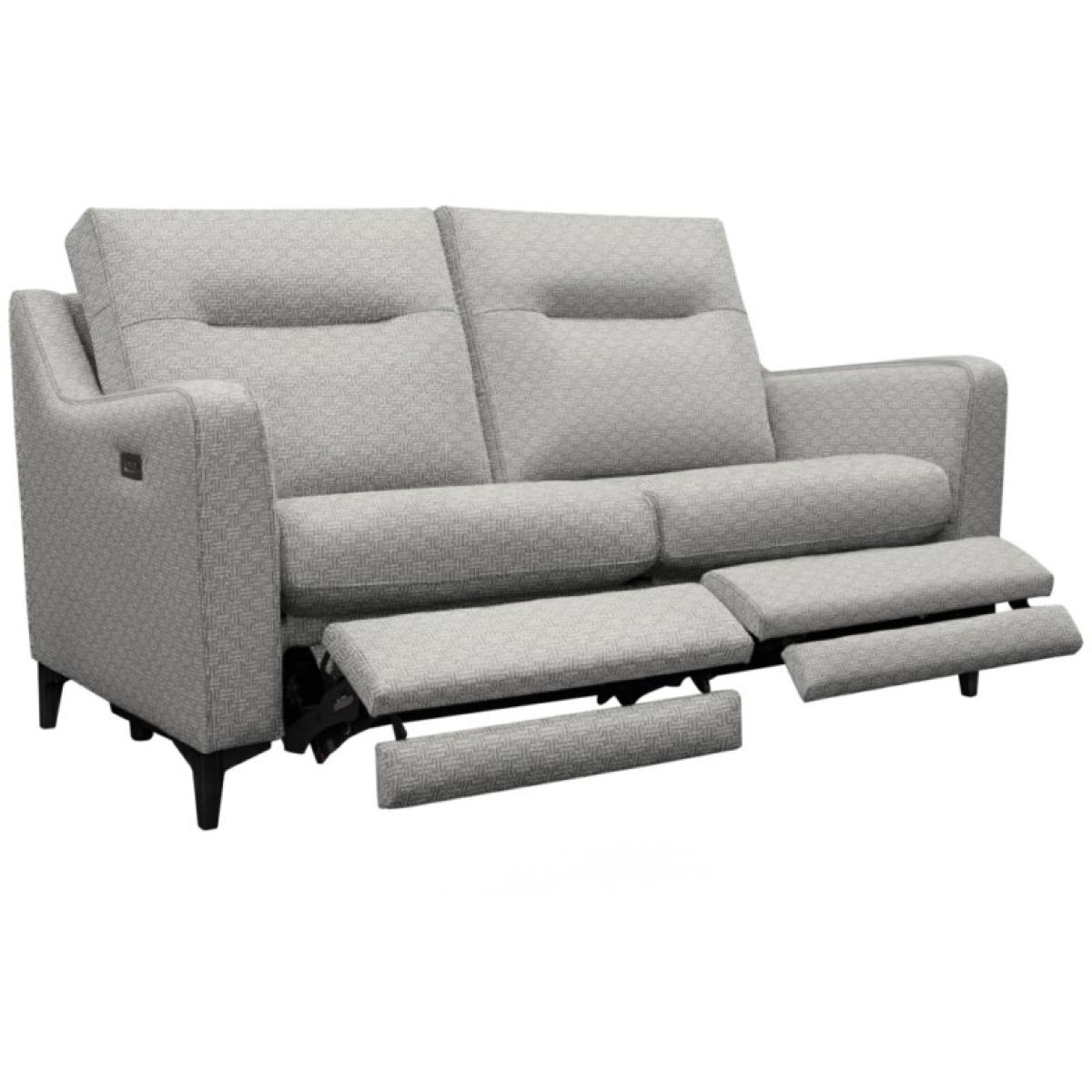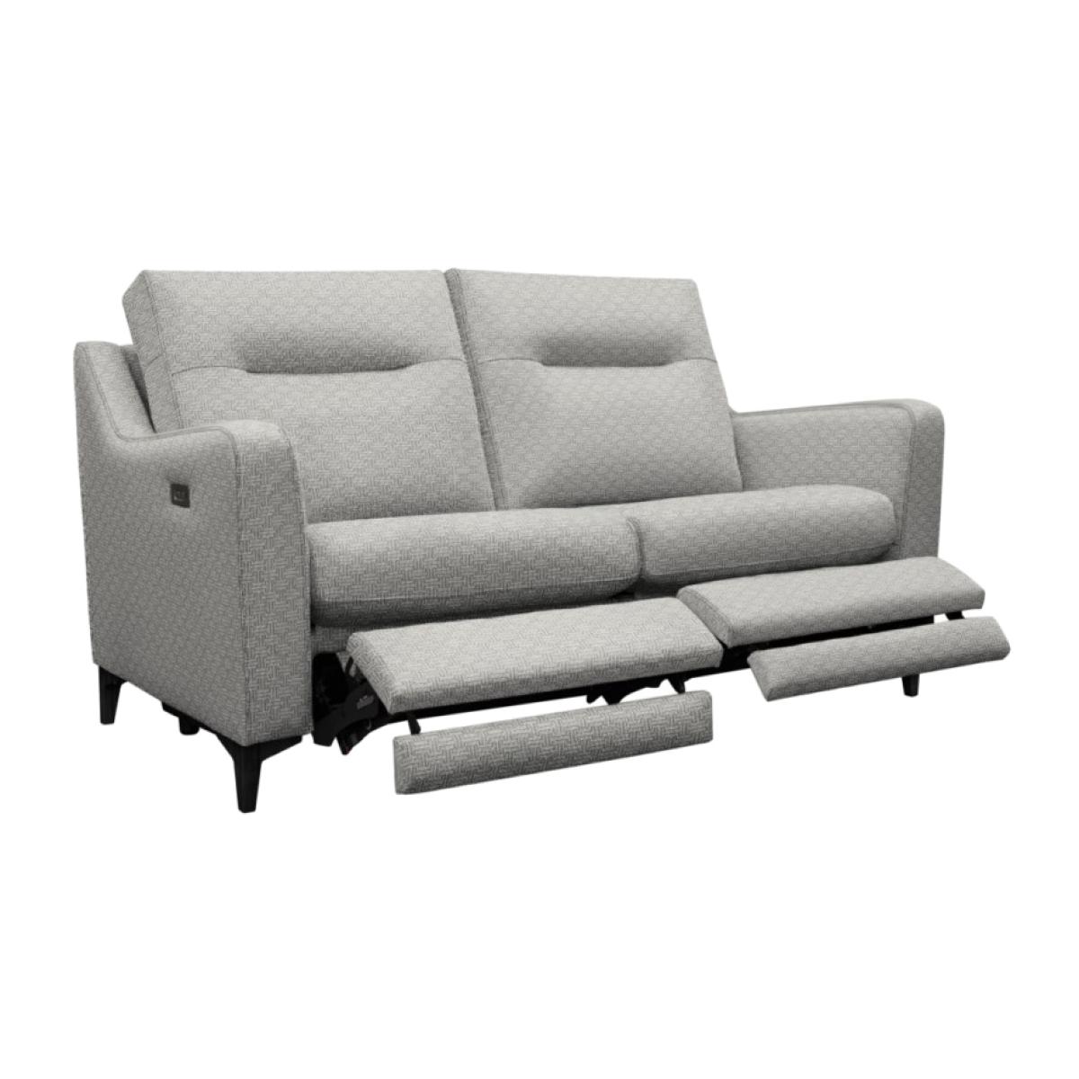 Introducing the G Plan Austen 2 Seater Fabric Sofa with Double Powered Footrests and USB charging ports. Experience luxurious comfort with minimal modern living. Deeply filled cushions provide the ultimate comfort, while additional Power Footrest options offer extra support with the G Plan Austen range of sofas and chairs. Choose from Show Wood feet in ebony, walnut, oak, or mahogany, and select from a range of beautiful fabrics and leathers to suit your style. All power footrest options come with touch buttons and a USB charging port as standard. Recliner furniture is supplied on fixed feet only and in sections for ease of delivery. Handcrafted in the UK, each piece comes with a 25-year timber frame and frame construction guarantee. Features: Double Powered Footrests supplied for each seat Handy USB charging ports built into each arm as standard A choice of Show Wood feet is available. Choose from a range of beautiful fabrics and leathers Handcrafted in the UK 25-year timber frame and construction guarantee 2 Seater Sofa Dimensions Height: 99cm Width: 158cm Depth: 103cm Seat Height: 51cm Seat Width: 119cm Seat Depth: 55cm PLEASE NOTE: The G Plan Austen sofa is shown here in the Link Mercury fabric and with Ebony wooden feet. This image an indication of what the cover may look like, we always recommend ordering swatch samples before ordering. All measurements are approximate and relate to the overall size of the item, including soft arm cushions where fitted and back cushions. All furniture is supplied on feet in a choice of show wood finishes. Available in a selection of fabrics and leathers. Seat cushions are a fixed type. All seat cushions and back cushions are non-reversible. Small & Large Double Power Footrest sofas are delivered in two sections which link together. Scatter cushions are available at extra cost.