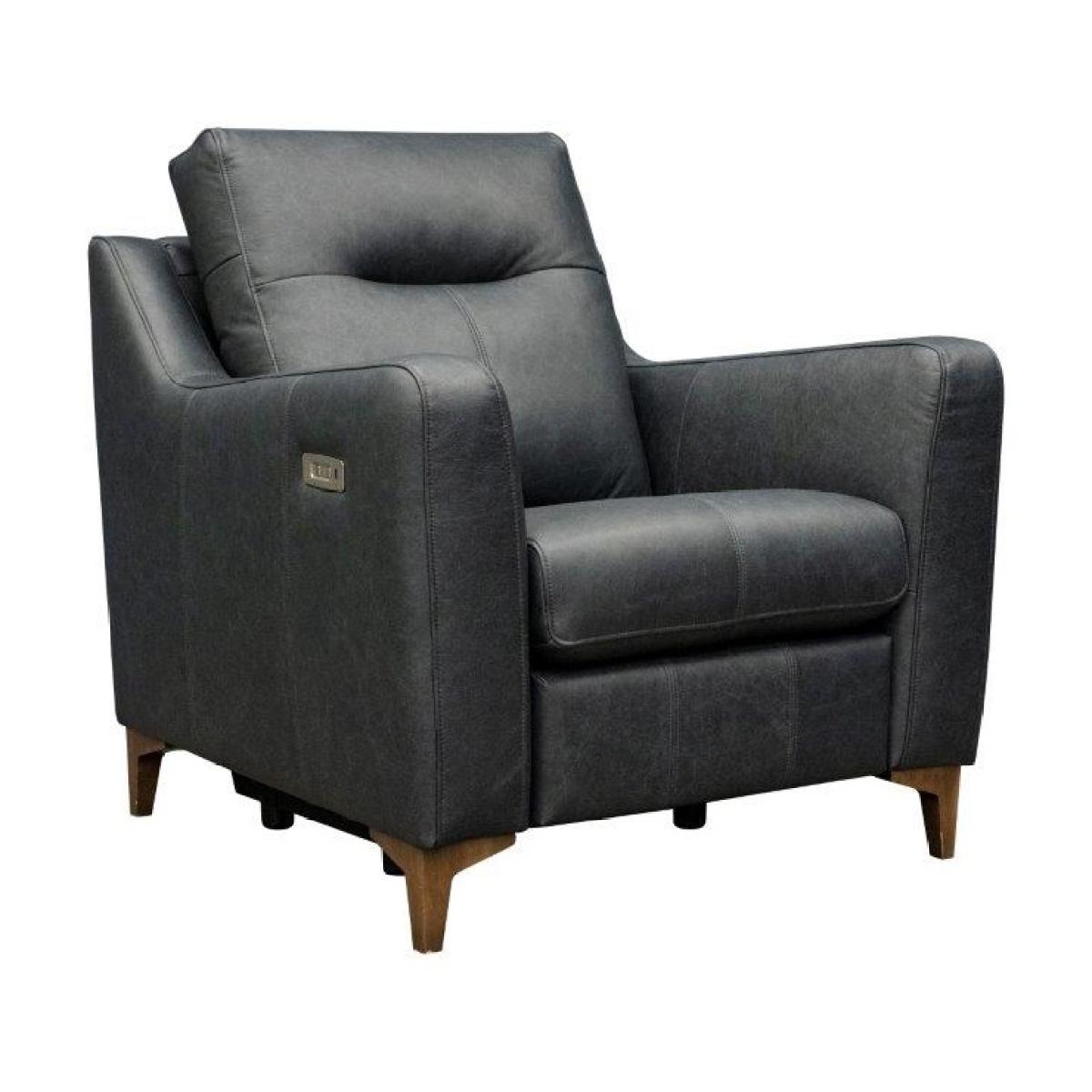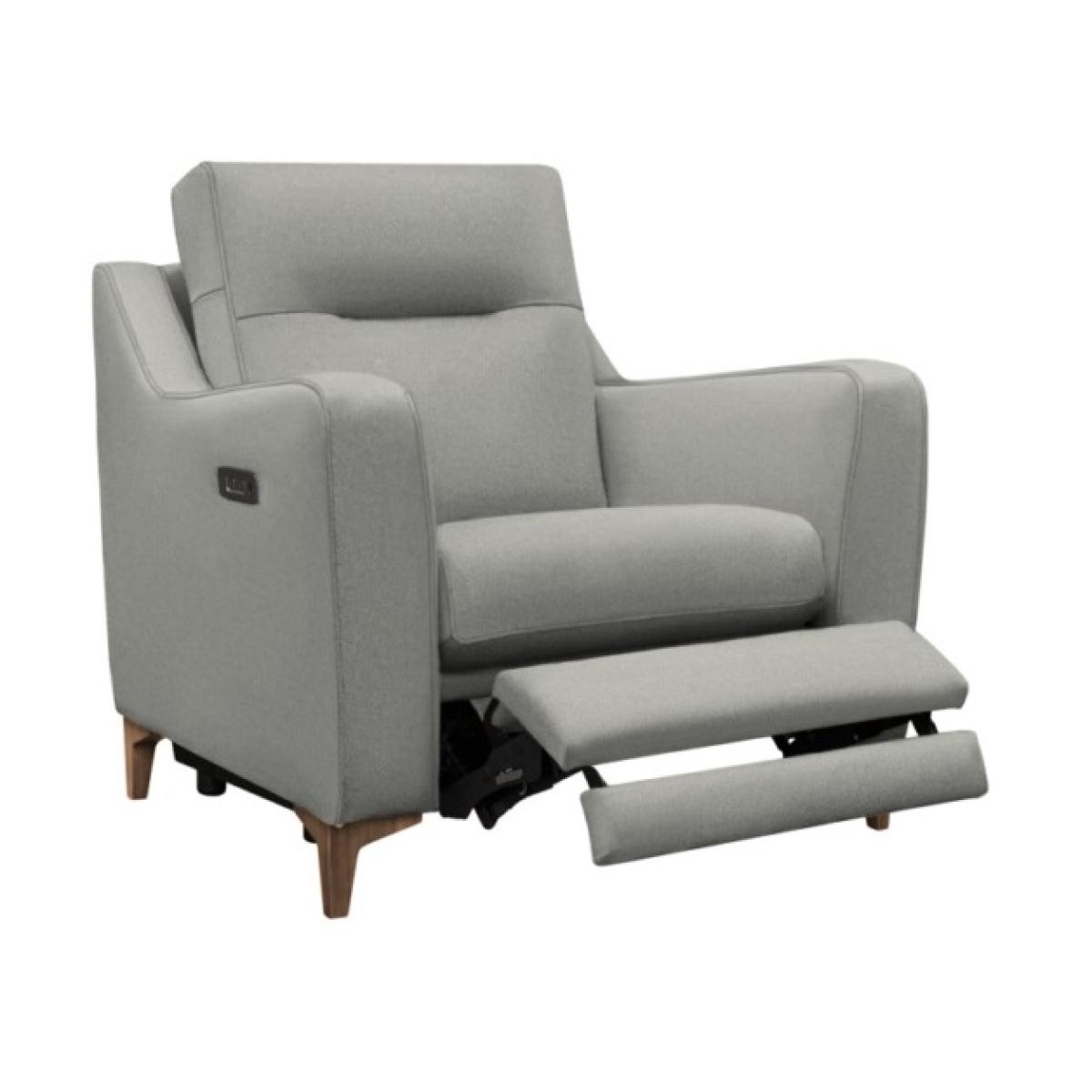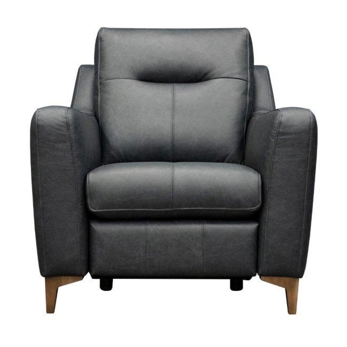 Introducing the G Plan Austen Leather Armchair with a Powered Footrest and USB charging port. Experience luxurious comfort with minimal modern living. Deeply filled cushions provide the ultimate comfort, while additional Power Footrest options offer extra support with the G Plan Austen range of sofas and chairs. Choose from Show Wood feet in ebony, walnut, oak, or mahogany, and select from a range of beautiful fabrics and leathers to suit your style. All power footrest options come with touch buttons and a USB charging port as standard. Recliner furniture is supplied on fixed feet only and in sections for ease of delivery. Handcrafted in the UK, each piece comes with a 25-year timber frame and frame construction guarantee. Features: Powered Footrest Handy USB charging port built in as standard A choice of Show Wood feet is available. Choose from a range of beautiful fabrics and leathers Handcrafted in the UK 25-year timber frame and construction guarantee Armchair Dimensions: Height: 99cm Width: 96cm Depth: 103cm Seat Height: 51cm Seat Width: 57cm Seat Depth: 55cm PLEASE NOTE: The G Plan Austen Armchair is shown in the first image in Texas Charcoal leather with Walnut wooden feet. This image is an indication of what the cover may look like, we always recommend ordering swatch samples before ordering. All measurements are approximate and relate to the overall size of the item, including soft arm cushions where fitted and back cushions. All furniture is supplied on feet in a choice of show wood finishes. Available in a selection of fabrics and leathers. Seat cushions are a fixed type. All seat cushions and back cushions are non-reversible. Small & Large Double Power Footrest sofas are delivered in two sections which link together. Scatter cushions are available at extra cost.