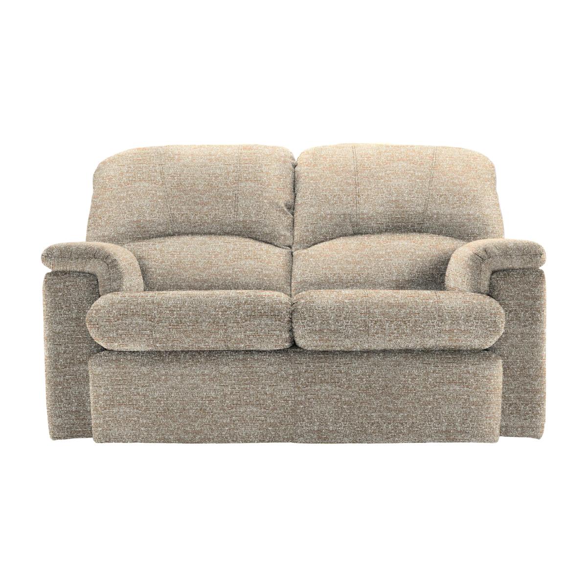 Lavishly upholstered with softly curved lines, the G Plan Chloe collection of sofas and chairs is beautiful to look at. And with high backs, inbuilt lumbar support, luxuriously padded arms and the option of manual or power recliners, supremely comfortable too. Furniture Village holds the full G Plan catalogue of fine fabrics and wood samples. Luxuriously comfortable fabric 2 seater sofa from G Plan Deeply cushioned arms and backs with zip-on cushions High backed, with supportive inbuilt lumbar support Bull-nose foam and fibre seat cushions are made to keep their shape Fixed seat or with power or manual dual recliners Upholstered in fine, touchably soft fabric in a wide choice of colours With a 10 year spring and frame guarantee