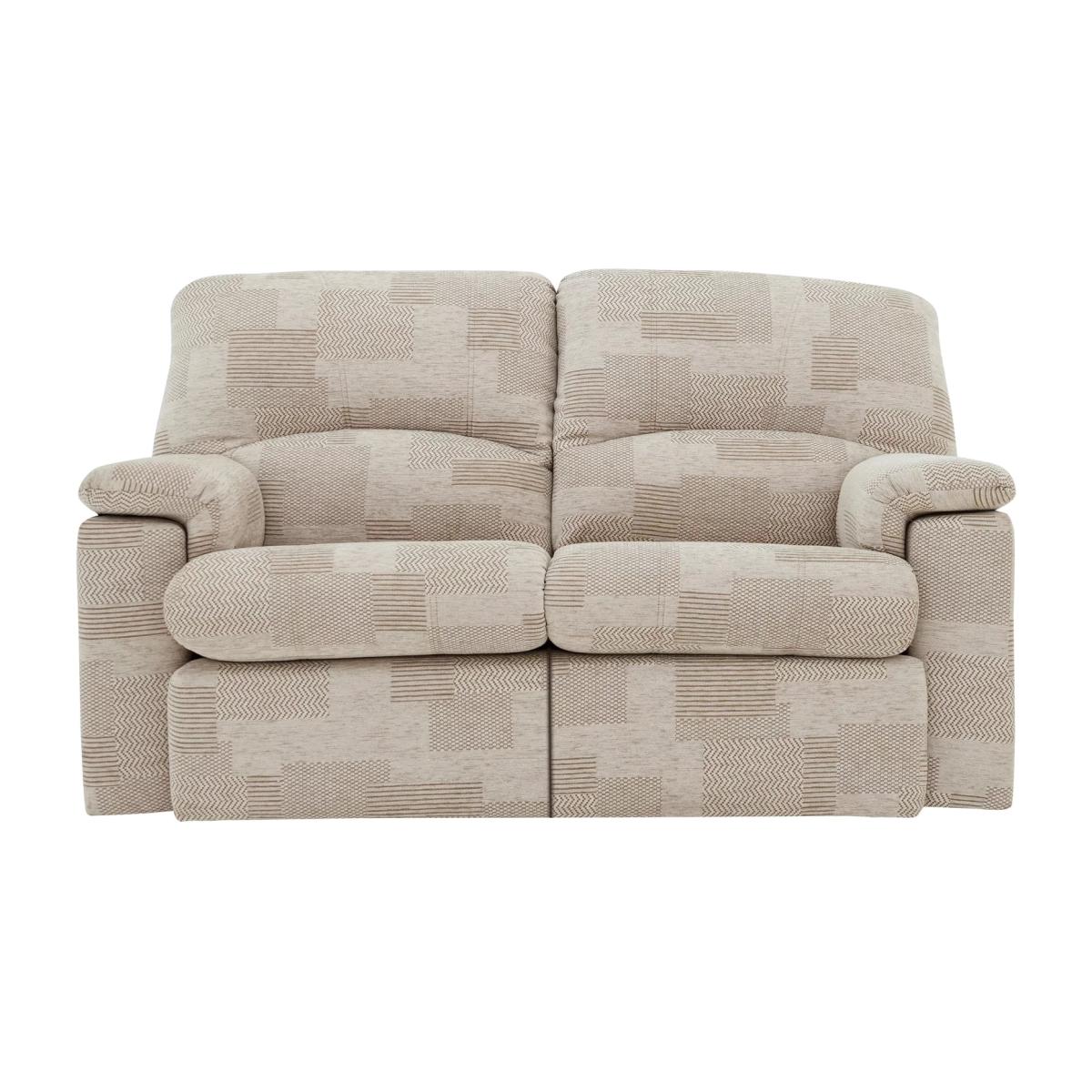 The G Plan Chloe 2 seater recliner sofa offers the perfect blend of compact size and ultimate relaxation, allowing you to lounge in comfort with adjustable reclining positions. It combines distinctive high-back design and bull-nose seat cushions for a stylish yet exceptionally comfortable seating experience. Its high-quality tailoring and generously padded arms contribute to a sense of well-being and relaxation. Available in a variety of beautiful fabrics and leathers, the Chloe can be tailored to suit your personal style. Shown here in Checkers Oyster and Checkers Putty fabrics and in Capri Chocolate leather. Features Distinctive high back and bull-nose seat cushions balance style with exceptional comfort. The high-quality tailoring and generously padded arms enhance feeling of wellbeing and relaxation. A shorter seat complements the back cushions to deliver a supportive upright sit. Recliner sofas are supplied in sections for ease of delivery. Recliner furniture is supplied on fixed feet only. Handcrafted in the UK with a 25 year timber frame & frame construction guarantee. Dimensions Height: 105cm Width: 163cm Depth: 100cm Seat Height: 56cm Seat Depth: 51cm Seat Width: 106cm Clearance needed for full recline: 70cm All measurements are approximate and relate to the overall size of the item including soft arm cushions where fitted and back cushions. All screens vary in colour reproduction and whilst every effort has been made to display the colour as accurately as possible it is for guidance only.