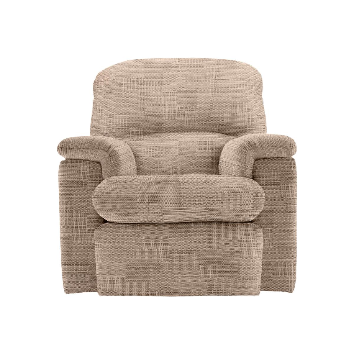 Lavishly upholstered with softly curved lines, the G Plan Chloe collection of sofas and chairs is beautiful to look at. And with high backs, inbuilt lumbar support, luxuriously padded arms and the option of manual or power recliners, supremely comfortable too. Furniture Village holds the full G Plan catalogue of fine fabrics and wood samples. Luxuriously comfortable fabric upholstered armchair from G Plan Deeply cushioned arms and backs with zip-on cushions High backed, with supportive inbuilt lumbar support Bull-nose foam and fibre seat cushion keeps its shape Fixed seat or with power or manual recliner Upholstered in fine, touchably soft fabric in a wide choice of colours With a 10 year spring and frame guarantee