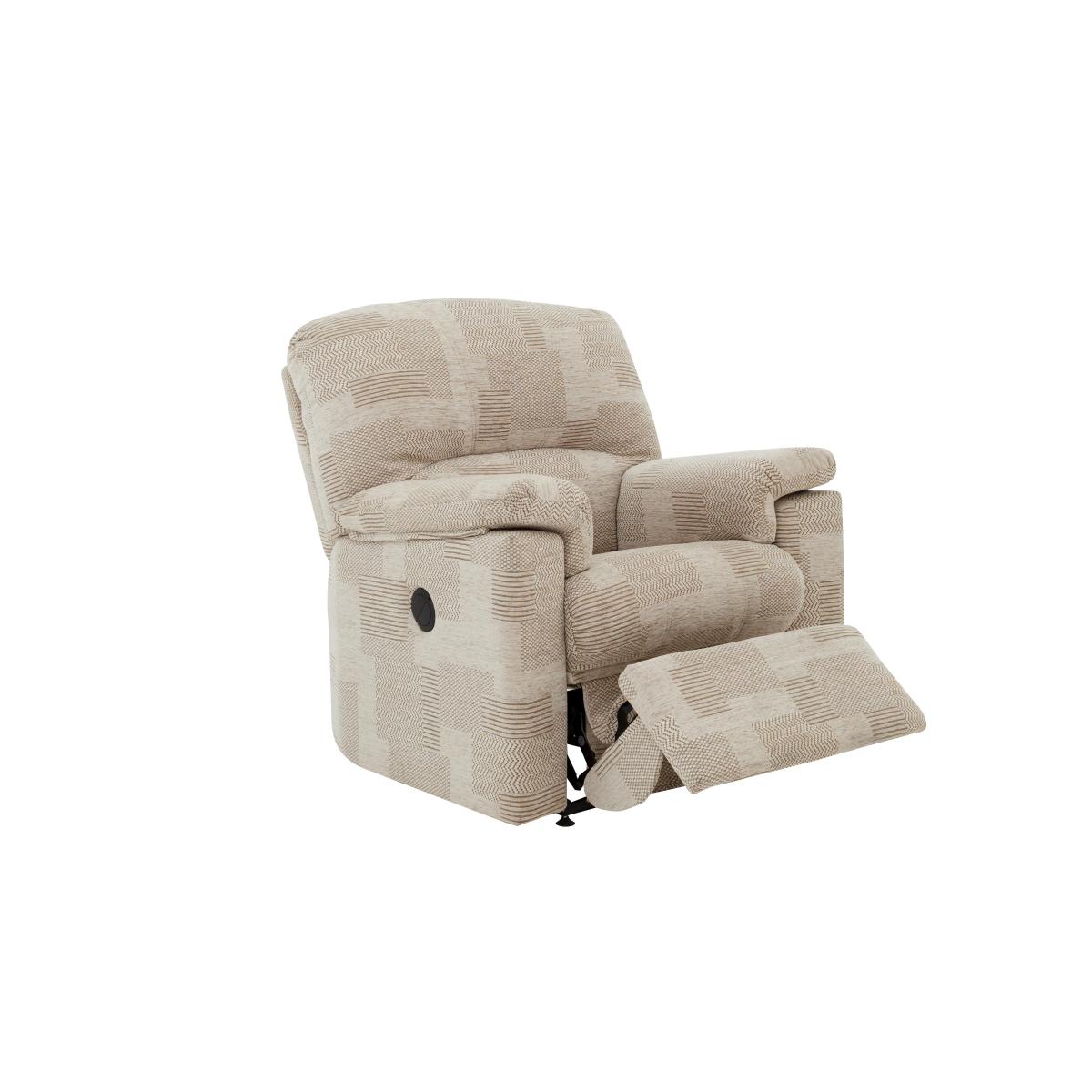 Lavishly upholstered with softly curved lines, the G Plan Chloe collection of sofas and chairs is beautiful to look at. And with high backs, inbuilt lumbar support, luxuriously padded arms and the option of manual or power recliners, supremely comfortable too. Furniture Village holds the full G Plan catalogue of fine fabrics and wood samples. Luxuriously comfortable fabric upholstered armchair from G Plan Deeply cushioned arms and backs with zip-on cushions High backed, with supportive inbuilt lumbar support Bull-nose foam and fibre seat cushion keeps its shape Fixed seat or with power or manual recliner Upholstered in fine, touchably soft fabric in a wide choice of colours With a 10 year spring and frame guarantee