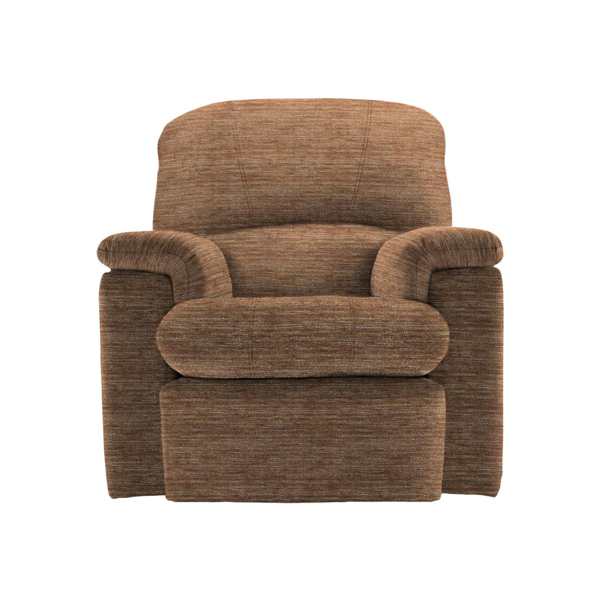 Lavishly upholstered with softly curved lines, the G Plan Chloe collection of sofas and chairs is beautiful to look at. And with high backs, inbuilt lumbar support, luxuriously padded arms and the option of manual or power recliners, supremely comfortable too. Furniture Village holds the full G Plan catalogue of fine fabrics and wood samples. Luxuriously comfortable fabric upholstered armchair from G Plan Deeply cushioned arms and backs with zip-on cushions High backed, with supportive inbuilt lumbar support Bull-nose foam and fibre seat cushion keeps its shape Fixed seat or with power or manual recliner Upholstered in fine, touchably soft fabric in a wide choice of colours With a 10 year spring and frame guarantee