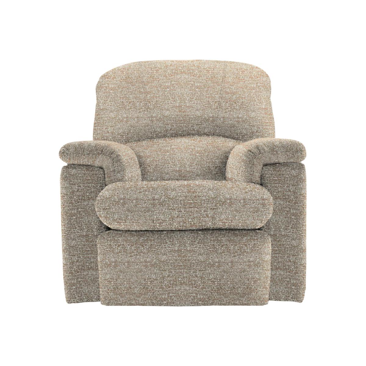 Lavishly upholstered with softly curved lines, the G Plan Chloe collection of sofas and chairs is beautiful to look at. And with high backs, inbuilt lumbar support, luxuriously padded arms and the option of manual or power recliners, supremely comfortable too. Furniture Village holds the full G Plan catalogue of fine fabrics and wood samples. Luxuriously comfortable fabric upholstered armchair from G Plan Deeply cushioned arms and backs with zip-on cushions High backed, with supportive inbuilt lumbar support Bull-nose foam and fibre seat cushion keeps its shape Fixed seat or with power or manual recliner Upholstered in fine, touchably soft fabric in a wide choice of colours With a 10 year spring and frame guarantee