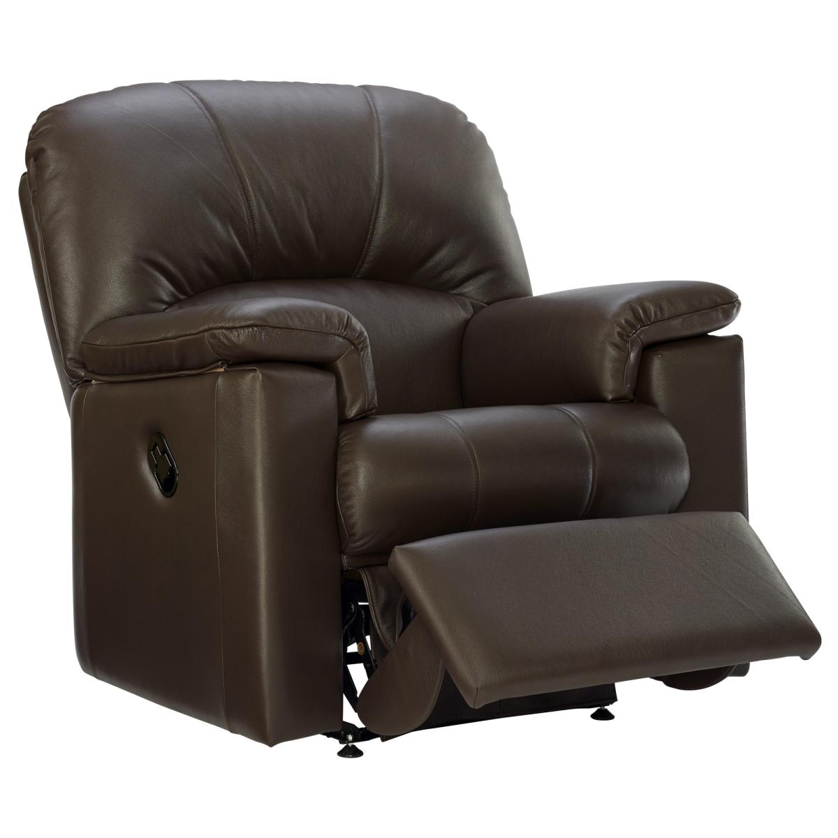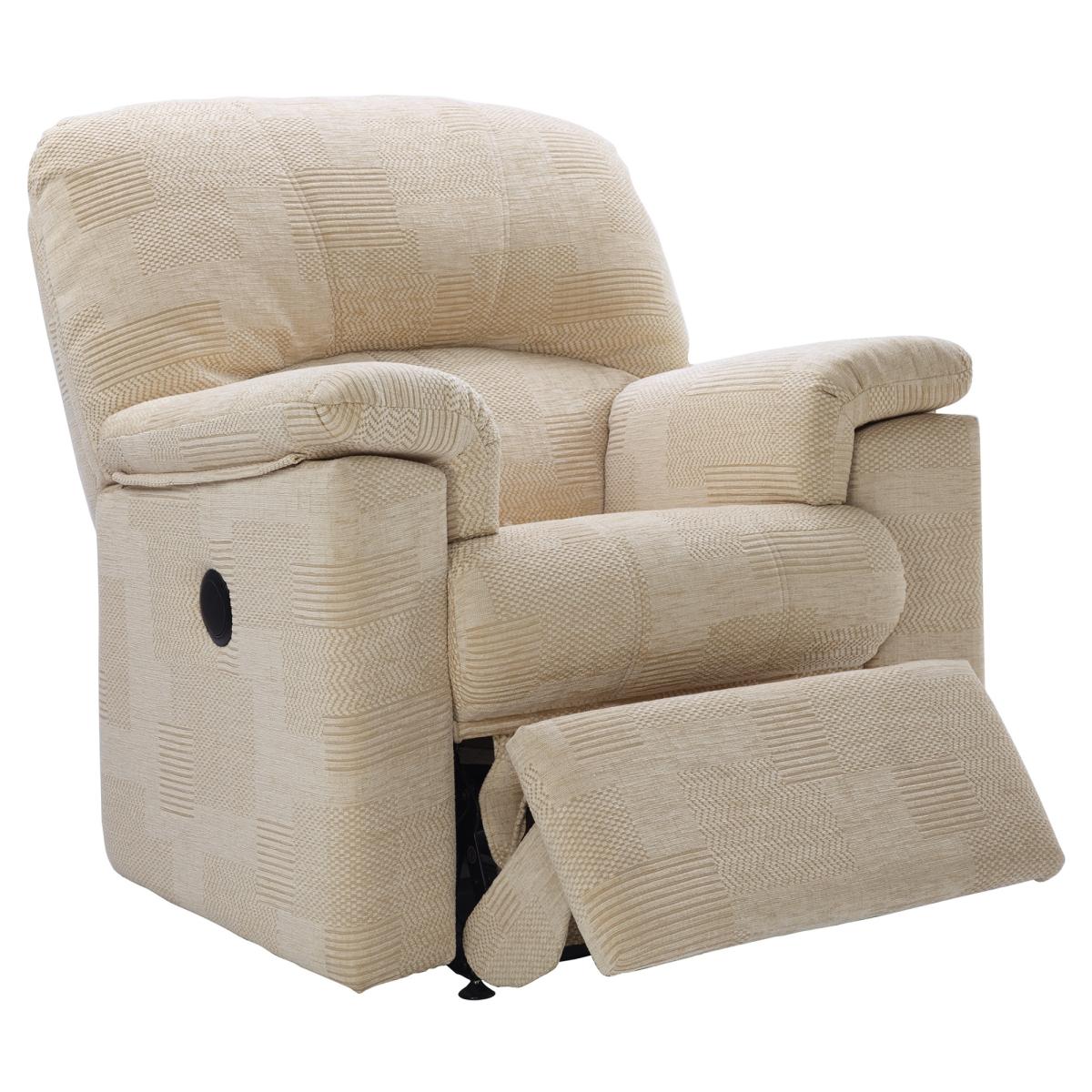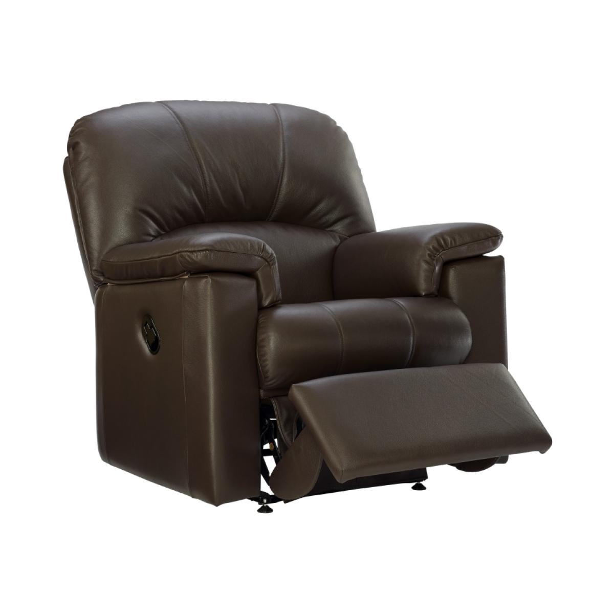 The G Plan Chloe Recliner Armchair is available in small or standard size and offers offers the perfect blend of compact size and ultimate relaxation, allowing you to lounge in comfort with adjustable reclining positions. It combines distinctive high-back design and bull-nose seat cushions for a stylish yet exceptionally comfortable seating experience. Its high-quality tailoring and generously padded arms contribute to a sense of well-being and relaxation. Available in a variety of beautiful fabrics and leathers, the Chloe can be tailored to suit your personal style. Standard size chair shown here in Checkers Oyster fabric and Capri Chocolate leather. Small size chair shown here in Checkers Oyster fabric and Capri Taupe leather. Features: Distinctive high back and bull-nose seat cushions balance style with exceptional comfort. The high-quality tailoring and generously padded arms enhance feeling of wellbeing and relaxation. A shorter seat complements the back cushions to deliver a supportive upright sit. Recliner furniture is supplied on fixed feet only. Handcrafted in the UK with a 25 year timber frame & frame construction guarantee. Dimensions: Standard Chair: Height: 105.4cm Width: 100.3cm Depth: 100.3cm Seat Height: 56cm Seat Depth: 51cm Seat Width: 46cm Clearance needed for full recline: 70cm Small Chair: Height: 97.8cm Width: 87.6cm Depth: 100.3cm Seat Height: 51cm Seat Depth: 51cm Seat Width: 41cm Clearance needed for full recline: 70cm All measurements are approximate and relate to the overall size of the item including soft arm cushions where fitted and back cushions. All screens vary in colour reproduction and whilst every effort has been made to display the colour as accurately as possible it is for guidance only.