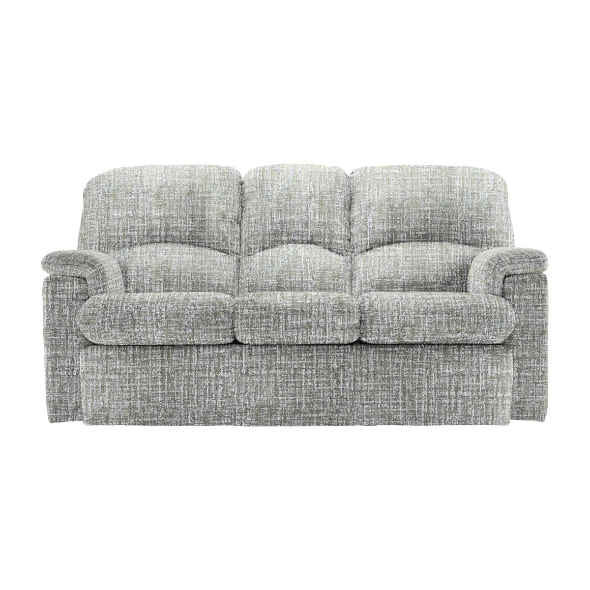 . High backed, cushioned luxury from G Plan. Sprung seats, luxury fibre back cushions, bull-nose foam seat cushions. Fixed seat or with power or manual dual recliners. With a 10 year spring and frame guaranteeSmall, but perfectly formed, the G Plan Chloe small three seater fabric sofa has it all. It’s softly curved and stylish, and made by the master craftsmen at G Plan with your comfort in mind. And while it seats three people, it fits into a smaller room with ease. You can even choose from a range of stylish colours, to suit your décor. This compact sofa is covered with soft to the touch, fine fabric in your choice of shades. Some fabrics can show wear on areas of more use or in direct sunlight. To keep your fabric upholstery looking fresh, plump, turn and rotate seat and back cushions regularly if possible..