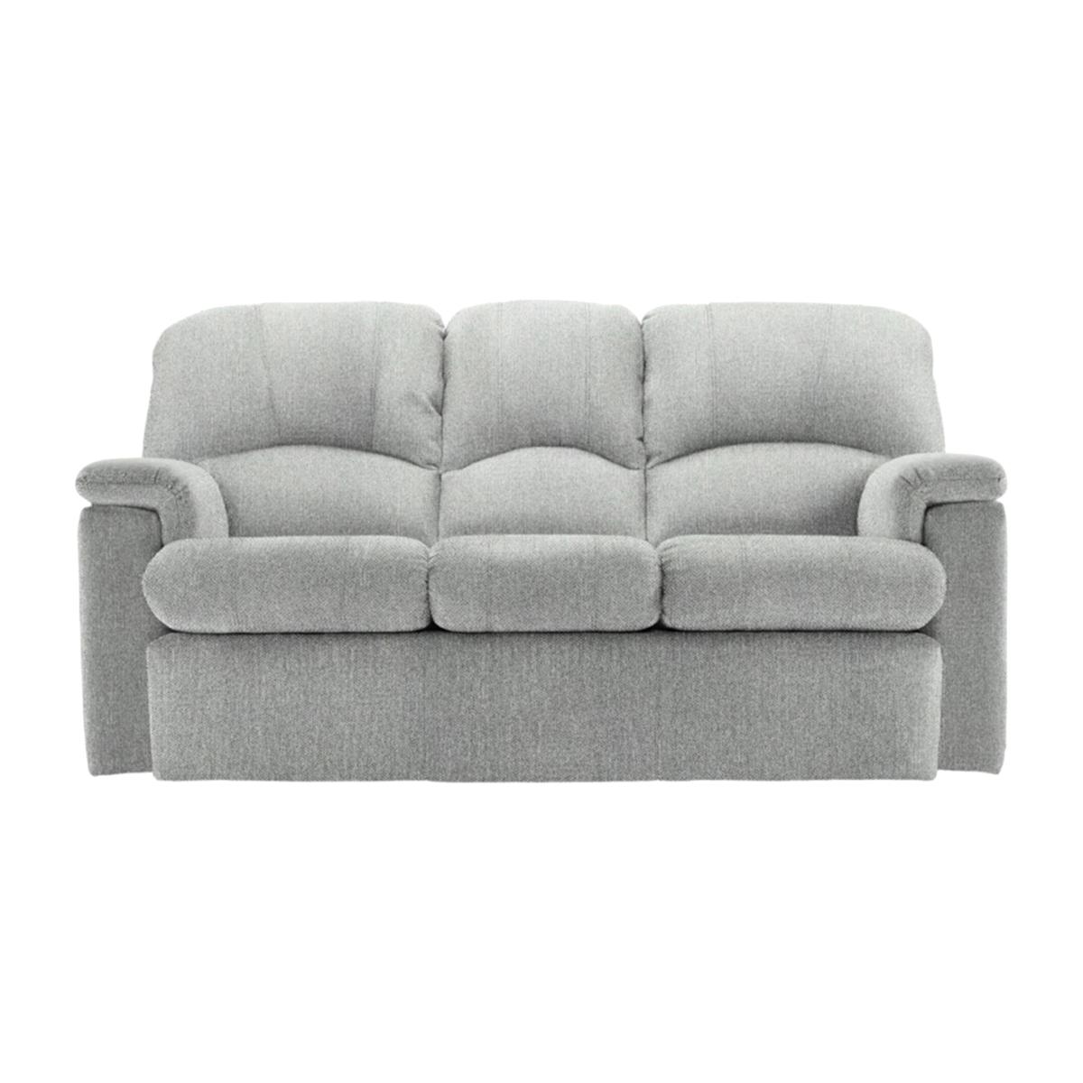 . High backed, cushioned luxury from G Plan. Sprung seats, luxury fibre back cushions, bull-nose foam seat cushions. Fixed seat or with power or manual dual recliners. With a 10 year spring and frame guaranteeSmall, but perfectly formed, the G Plan Chloe small three seater fabric sofa has it all. It’s softly curved and stylish, and made by the master craftsmen at G Plan with your comfort in mind. And while it seats three people, it fits into a smaller room with ease. You can even choose from a range of stylish colours, to suit your décor. This compact sofa is covered with soft to the touch, fine fabric in your choice of shades. Some fabrics can show wear on areas of more use or in direct sunlight. To keep your fabric upholstery looking fresh, plump, turn and rotate seat and back cushions regularly if possible..