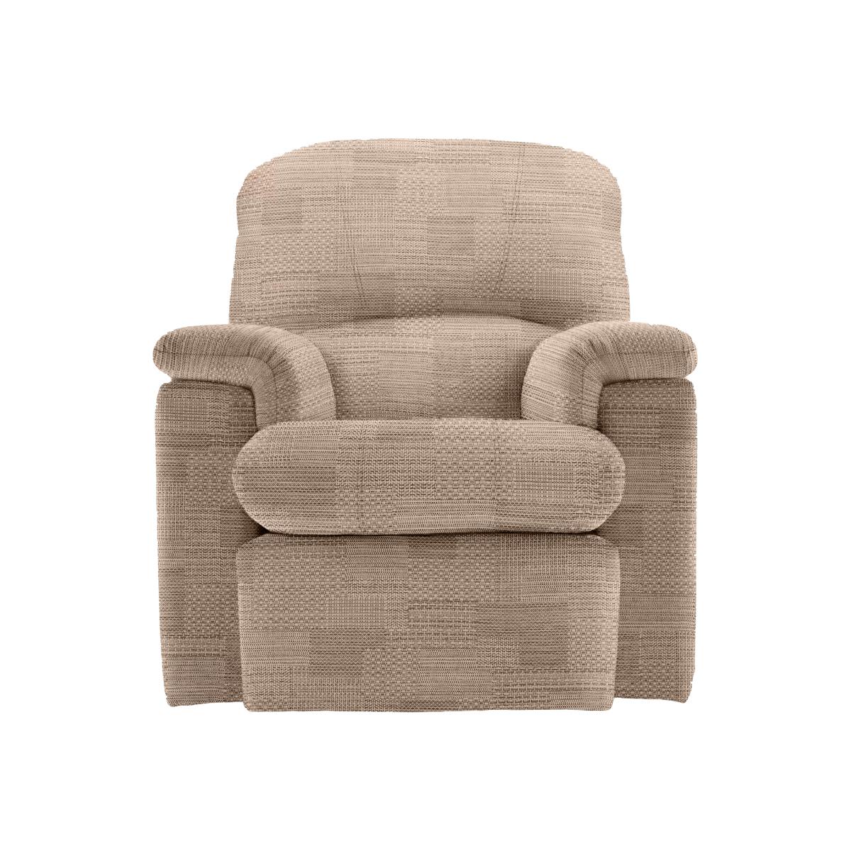 Lavishly upholstered with softly curved lines, the G Plan Chloe collection of sofas and chairs is beautiful to look at. And with high backs, inbuilt lumbar support, luxuriously padded arms and the option of manual or power recliners, supremely comfortable too. Furniture Village holds the full G Plan catalogue of fine fabrics and wood samples. Luxuriously comfortable compact armchair from G Plan Deeply cushioned arms and backs with zip-on cushions High backed, with supportive inbuilt lumbar support Bull-nose foam and fibre seat cushion keeps its shape Fixed seat or with power or manual recliner Upholstered in fine, touchably soft fabric in a wide choice of colours With a 10 year spring and frame guarantee