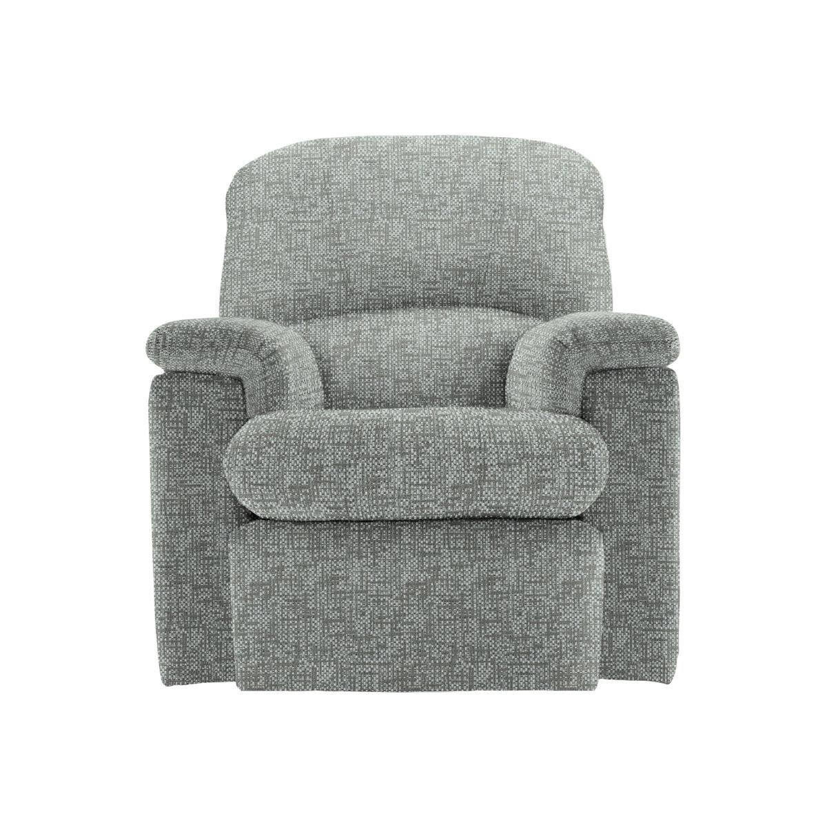 Lavishly upholstered with softly curved lines, the G Plan Chloe collection of sofas and chairs is beautiful to look at. And with high backs, inbuilt lumbar support, luxuriously padded arms and the option of manual or power recliners, supremely comfortable too. Furniture Village holds the full G Plan catalogue of fine fabrics and wood samples. Luxuriously comfortable compact armchair from G Plan Deeply cushioned arms and backs with zip-on cushions High backed, with supportive inbuilt lumbar support Bull-nose foam and fibre seat cushion keeps its shape Fixed seat or with power or manual recliner Upholstered in fine, touchably soft fabric in a wide choice of colours With a 10 year spring and frame guarantee