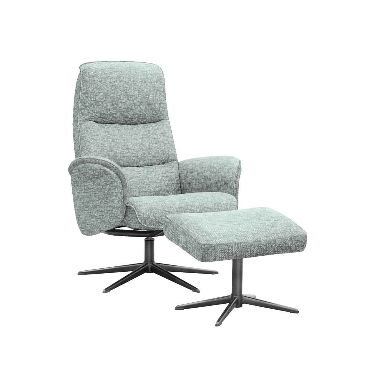 Comfort meets style in this swivel recliner chair and footstool set from British design house G Plan. Evoking cool 1970s style, each piece in the set features neat top stitching and a black metal base. Why you'll love it Seriously comfortable swivel chair and footstool set from style icon G Plan. Eye-catching 1970s-inspired design. Chair swivels 360 degrees. Footstool is fixed. Superbly cushioned throughout. Seat back recline is manually adjustable. Choose from the entire G Plan fabric swatch book for the upholstery. Also available with 100% leather upholstery. Chair and footstool have black metal bases. Find the G Plan Falum fabric swivel chair and footstool set only at Furniture Village. What you need to know Medium comfort level. Seat suspension: springs. Seat cushioning: foam. Seat cushion is fixed. Back suspension: cold-cured moulded foam. Back cushioning: cold-cured moulded foam. Back cushion is fixed. Please allow time for new recliners to ease. Minor gaps are necessary to ensure ease of recliner motion and may be exaggerated depending on floor type. Some fabrics can show wear on areas of more use or in direct sunlight. Clean regularly using a soft brush or vacuum with the curtain attachment. Deal with any spills promptly. Professional cleaning advised for oil- and grease-based stains. Please read our upholstery care guide for more advice. Item code:FALUCHSBB-004