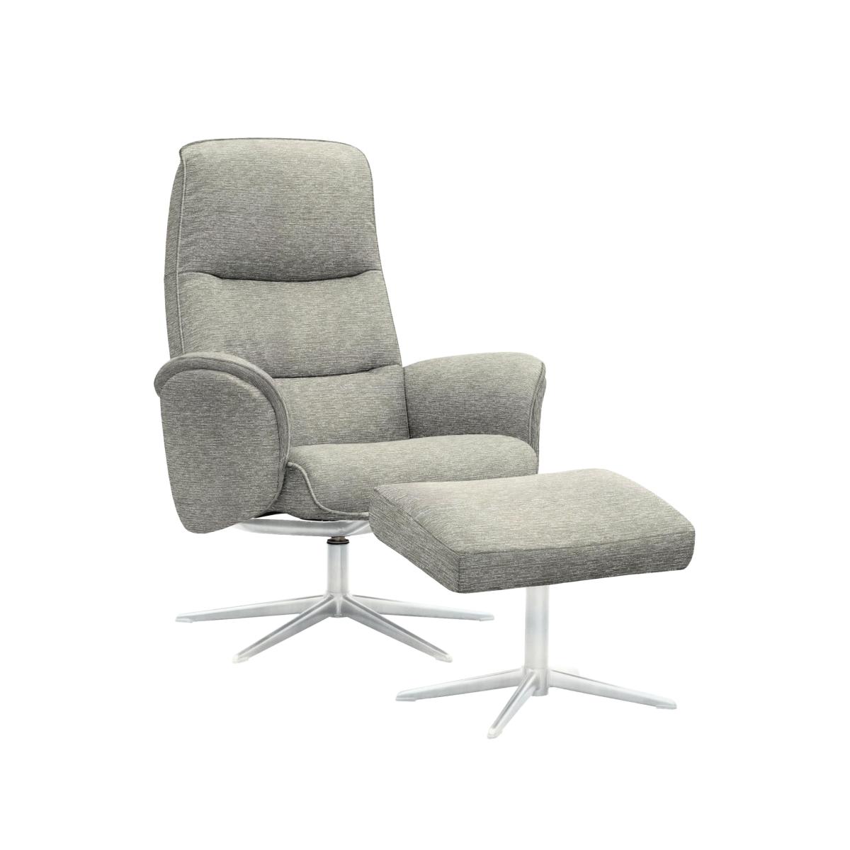 Comfort meets style in this swivel recliner chair and footstool set from British design house G Plan. Evoking cool 1970s style, each piece in the set features neat top stitching and a chrome-finished metal base. Why you'll love it Seriously comfortable swivel chair and footstool set from style icon G Plan. Eye-catching 1970s-inspired design. Chair swivels 360 degrees. Footstool is fixed. Superbly cushioned throughout. Seat back recline is manually adjustable. Choose from the entire G Plan fabric swatch book for the upholstery. Also available with 100% leather upholstery. Chair and footstool have chrome-finished metal bases. Find the G Plan Falum fabric swivel chair and footstool set only at Furniture Village. What you need to know Medium comfort level. Seat suspension: springs. Seat cushioning: foam. Seat cushion is fixed. Back suspension: cold-cured moulded foam. Back cushioning: cold-cured moulded foam. Back cushion is fixed. Please allow time for new recliners to ease. Minor gaps are necessary to ensure ease of recliner motion and may be exaggerated depending on floor type. Some fabrics can show wear on areas of more use or in direct sunlight. Clean regularly using a soft brush or vacuum with the curtain attachment. Deal with any spills promptly. Professional cleaning advised for oil- and grease-based stains. Please read our upholstery care guide for more advice. Item code: FALUCHSCB-019