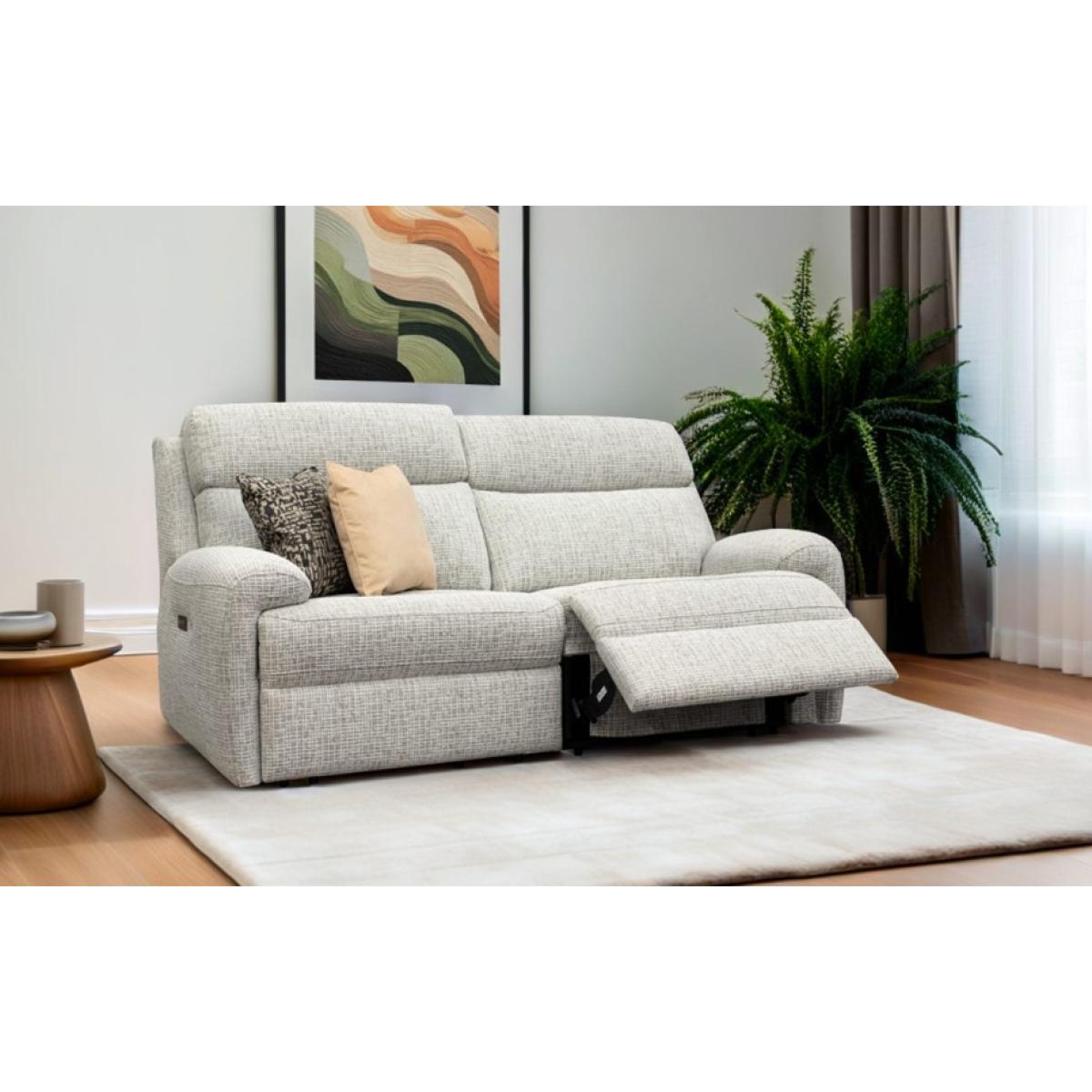 The G Plan Hardy 2 Seater Fabric Recliner Sofa is a fantastic new model from G Plan which combines practicality with the modern G Plan design that we know and love. The curved, padded arms of the Hardy provide the ultimate relaxation at the end of a busy. Further comfort comes from the plush, full cushions which offer a deep and relaxing sit. Innovative design comes with the option of additional headrest and lumbar support for customised comfort on power units. There is also a handy storage footstool option available to perfectly pair with your sofa or chair. A new feature for G Plan are their heated seats; easy and convenient to use. At just the touch of a button, the integrated heat pads will run for a 60-minute cycle and give a slow and gentle warming, allowing ample time to relax deeply and enjoy the luxury experience. When you're done with your lounging, simply hit the control button and the heat will turn off. Features: Please note that rechargeable power packs are not available on pieces with heat. As always with G Plan, choose from a range of beautiful fabrics and leathers to suit your style and own personal taste. Pieces are handcrafted in the UK 25 year timber frame and frame construction guarantee. Dimensions: Height: 101cm Width: 176cm Depth: 104cm Seat Height: 51cm Seat Width: 120cm Seat Depth: 54cm Please note: All measurements are approximate and relate to the overall size of the item, including soft arm cushions where fitted and back cushions. 2 and 3 seater double recliner sofas are delivered in 2 sections. Our recliner furniture requires room to recline. Double recliner furniture with headrest/lumbar functionality will require a purchase of two rechargeable power packs for remote operation. Please follow the instructions to ensure these are connected correctly. All screens vary in colour reproduction and whilst every effort has been made to display the colour as accurately as possible it is for guidance only.