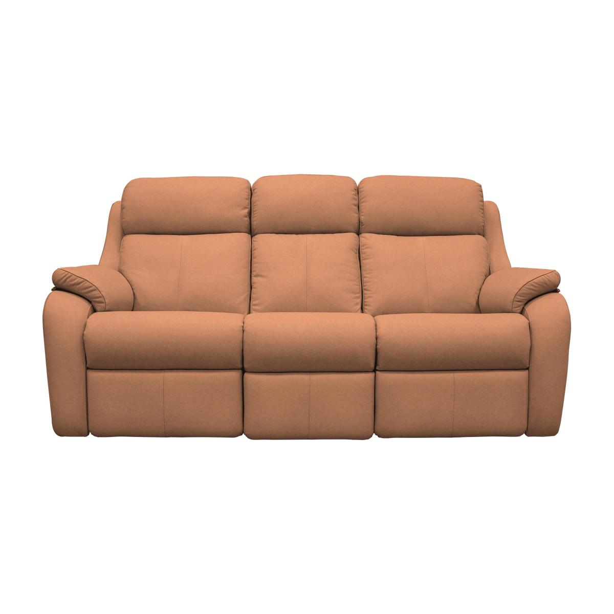 Introducing the UK’s first sofas and chairs with power assisted lumbar support. The Kingsbury range from G Plan customises your relaxation from top to toe with the option of power recliners, power headrests and an adjustable lumbar cushion that inflates at the touch of a button. So, whatever your height and size, you can tailor the comfort to suit you. Choose premium leather, or super-soft, textured bouclé fabric upholstery – there’s even a curved sofa option for a stylish, sociable space. Comfort, customised like no other. Handcrafted in the UK by G Plan, for Furniture Village. Beautifully contemporary leather sofa in soft premium leather, with G Plan’s famous comfort in to every stitch. Relax and enjoy the soft leather upholstery. With recliner options. Why you’ll love it G Plan’s famous comfort. Timeless contemporary style. Soft, premium leather upholstery. Choose no recliners or with manual or power recliners. Wide choice of upholstery and colours. Dress it up. G Plan scatters available to buy separately. Expertly handcrafted here in the UK. What you need to know Medium comfort level. Sprung seats, foam seat cushions, luxury fibre back cushions. Solid hardwood frame. Hidden glide feet. Non-recliner models delivered in one piece, measure carefully before delivery. Natural leather has unique marks and characteristics with variance in colour and texture, and softens with use. Smoothing seat cushions prevents ‘puddling’. Please read our upholstery care guide for more advice. Allow time for recliners to settle. Minor gaps for motion vary by floor type. Manual recliners may feel stiff at first, but will ease with use. Part of the G Plan Kingsbury range which includes a curved sofa and a storage footstool.
