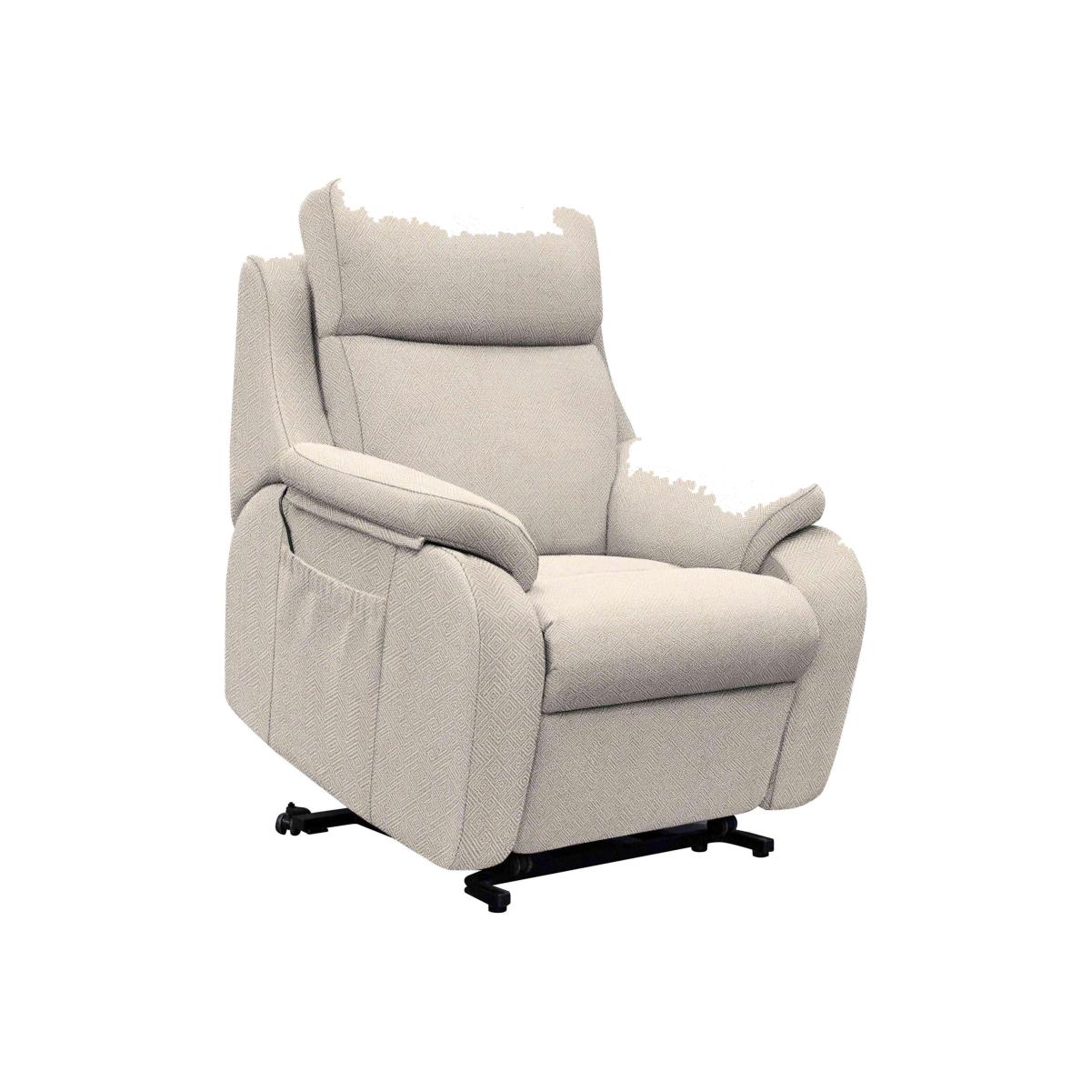 Beautifully handcrafted by G Plan, this large lift and rise chair simply makes life easier. As well as power recline, lift and rise functionality, you’ll also love its roomy sprung seat. Why you'll love it G Plan’s famous comfort with built-in power functionality. Easy to operate mechanism helps you sit, recline and stand. With comfortable sprung seat, integrated headrest and padded arm cushions. This chair has a little extra seat width for even greater comfort. Upholstered in a beautifully soft bouclé fabric. Wide choice of colours available. Also available with 100% leather upholstery. Expertly handcrafted here in the UK. This large fabric lift and rise chair is part of the G Plan Kingsbury range. What you need to know Medium comfort level. Seat suspension: spring. Seat cushioning: foam. Seat cushion is fixed. Back cushioning: luxury fibre. Back cushion is fixed. On glides. Please allow time for the lift, rise and recline mechanism to ease. Minor gaps are necessary to ensure ease of motion and may be exaggerated depending on floor type. Some fabrics can show wear on areas of more use or in direct sunlight. Fixed seat and back cushions require smoothing and straightening regularly. To smooth and straighten fixed cushions, punch the back cushion’s top two corners and the seat cushion’s outer two corners, and pinch outwards. Please read our upholstery care guide for more advice.