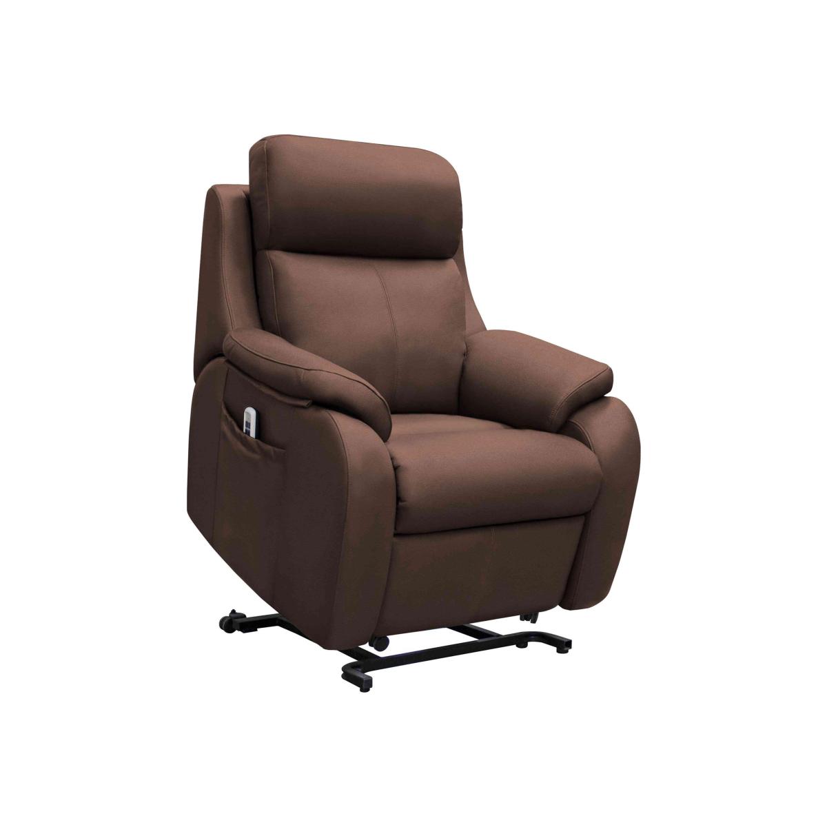 Comfort is now more luxurious thanks to this G Plan lift and rise armchair with an extra-wide seat and 100% leather upholstery. Handmade and offered in a wide choice of colours. Why you'll love it G Plan’s famous comfort with built-in power functionality. Easy to operate mechanism helps you sit, recline and stand. With comfortable sprung seat, integrated headrest and padded arm cushions. This chair has a little extra seat width for even greater comfort. Upholstered in 100% leather – so luxurious. Wide choice of colours available. Expertly handcrafted here in the UK. This large leather lift and rise chair is part of the G Plan Kingsbury range. What you need to know Medium comfort level. Seat suspension: spring. Seat cushioning: foam. Seat cushion is fixed. Back cushioning: luxury fibre. Back cushion is fixed. On glides. Please allow time for the lift, rise and recline mechanism to ease. Minor gaps are necessary to ensure ease of motion and may be exaggerated depending on floor type. Leather softens with use. Smoothing the tops of leather cushions prevents signs of visual comfort. Fixed seat and back cushions require smoothing and straightening regularly. To smooth and straighten fixed cushions, punch the back cushion’s top two corners and the seat cushion’s outer two corners, and pinch outwards. Please read our upholstery care guide for more advice.