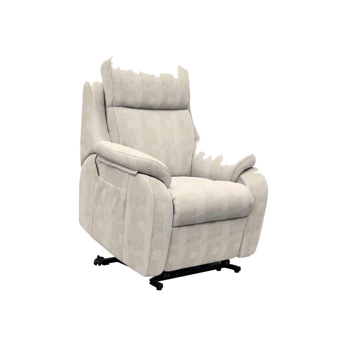 This handcrafted G Plan lift and rise chair makes life easier and look so stylish. You’ll love the comfy sprung seat and that soft bouclé fabric upholstery. Why you'll love it G Plan’s famous comfort with built-in power functionality. Easy to operate mechanism helps you sit, recline and stand. With comfortable sprung seat, integrated headrest and padded arm cushions. Upholstered in a beautifully soft bouclé fabric. Wide choice of colours available. Also available with 100% leather upholstery. Expertly handcrafted here in the UK. This small fabric lift and rise chair is part of the G Plan Kingsbury range. What you need to know Medium comfort level. Seat suspension: spring. Seat cushioning: foam. Seat cushion is fixed. Back cushioning: luxury fibre. Back cushion is fixed. On glides. Please allow time for the lift, rise and recline mechanism to ease. Minor gaps are necessary to ensure ease of motion and may be exaggerated depending on floor type. Some fabrics can show wear on areas of more use or in direct sunlight. Fixed seat and back cushions require smoothing and straightening regularly. To smooth and straighten fixed cushions, punch the back cushion’s top two corners and the seat cushion’s outer two corners, and pinch outwards. Please read our upholstery care guide for more advice.