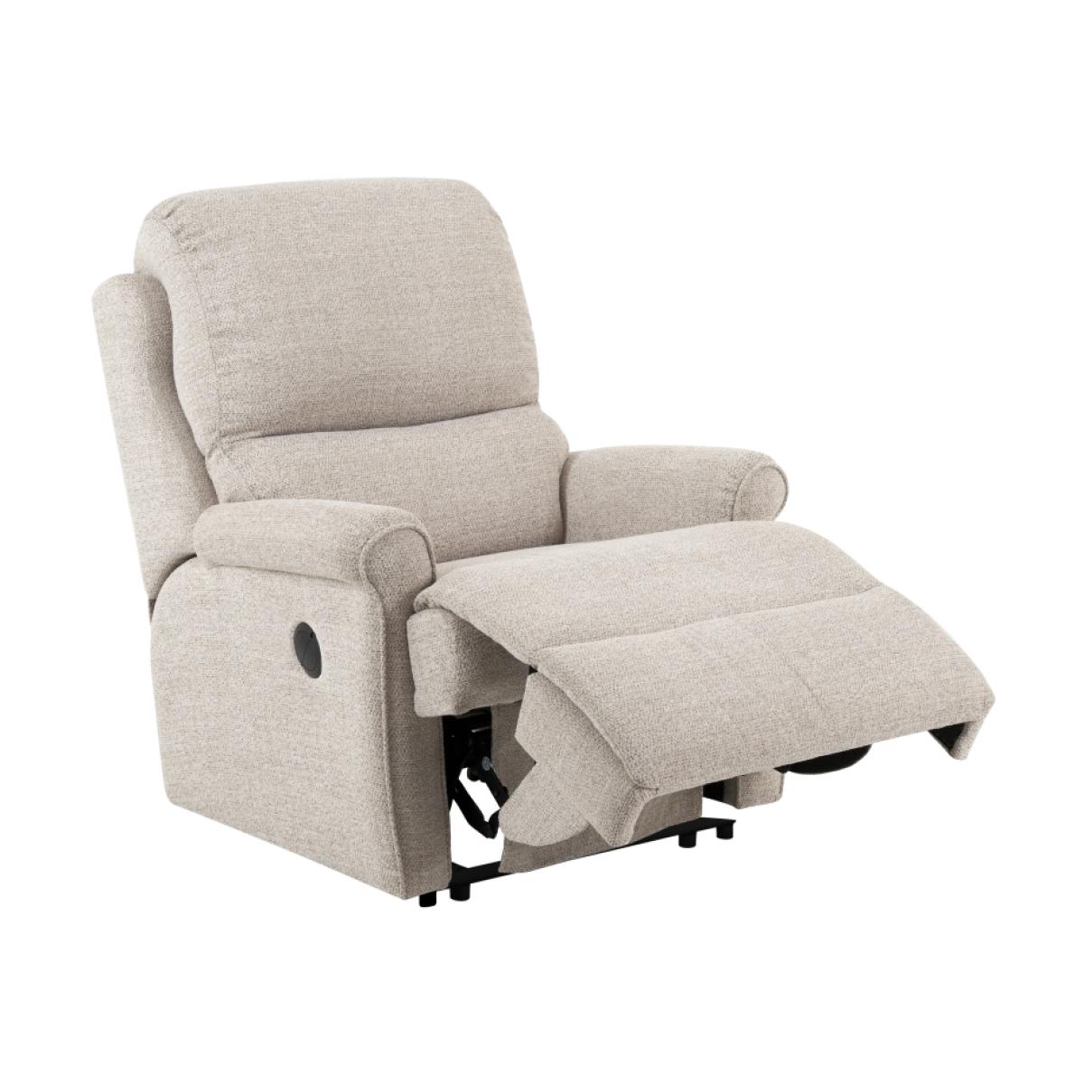 With sophisticated tailoring and sumptuous high back cushions, the Lingfield Fabric Recliner Chair from G Plan offers both style and support. Classic details like elegantly piped scroll arms and clean lines enhance its design, while the supportive upright sit provides classic comfort. Choose from a range of beautiful fabrics and leathers to suit your style and all static and recliner furniture is supplied on fixed glides. Handcrafted in the UK, each piece comes with a 25-year timber frame and frame construction guarantee. Features: Manual and Power reclining options available Sumptuous high back cushions Piped scroll arms Supportive sit Supplied on fixed glides as standard Available in a large range of fabrics and leathers Handcrafted in the UK with a 25-year timber frame and frame construction guarantee. Recliner Chair Dimensions: Height: 104cm Width: 84cm Depth: 96cm Seat Height: 49cm Seat Width: 52cm Seat Depth: 51cm Allow 12.7cm for chair to recline PLEASE NOTE: The G Plan Lingfield Recliner Chair is shown here in the Loom Shale fabric. This image is an indication of what the cover may look like, we always recommend ordering swatch samples before ordering. All screens vary in colour reproduction and whilst every effort has been made to display the colour as accurately as possible it is for guidance only. All measurements are approximate and relate to the overall size of the item including soft arm cushions where fitted and back cushions. All furniture is supplied on fixed glides. Castors are available as an option on select static pieces only. Recliners are available in manual or power versions. 2 seater double recliner sofas are delivered in two sections that link together. 3 seater double recliner sofas are delivered in three sections that link together. Seat cushions are a chaise style fixed type. Our recliner furniture requires room to recline. Scatter cushions are available at extra cost.