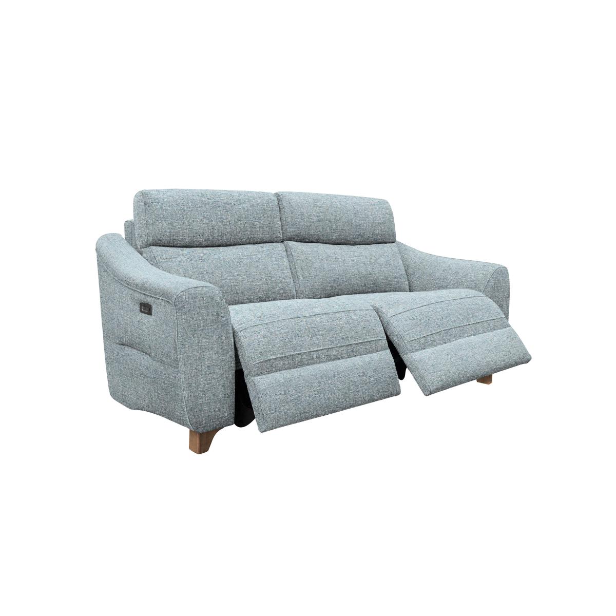 We’re very proud to introduce you to our G Plan Lucca range. Made just for us by G Plan, the collection features this famous brand’s signature approach to comfort alongside contemporary off-the-floor style. Each sofa, armchair and footstool is available in 100% top grain leather and high-quality fabric upholstery, and in a huge choice of colours. And because it’s G Plan, you can look forward to perfectly placed cushioning for back and neck support as well as superior craftsmanship. Make your Lucca sofa or armchair an even more relaxing experience by adding manual or power recliners. Handmade in Britain. Designed and handcrafted just for us by G Plan, this large fabric sofa combines G Plan’s signature support with contemporary off-the-floor design. It’s also available with power or manual recliners. Why you'll love it. G Plan’s legendary approach to comfort meets contemporary sofa style. On-trend off-the-floor look. High back promises wonderful neck and lumbar support. Deep seats for sink-in relaxation. Make it even more comfortable by adding manual or power recliners. Stylish stitching detail. Statement legs in brushed chrome or a choice of wood finishes. Power recliner sofa comes with built-in with USB charging ports. Handcrafted in Britain. Made by G Plan exclusively for Furniture Village. What you need to know. Medium comfort. Fixed foam seat cushions on serpentine spring suspension. Fibre-filled back cushions. Clean weekly using a soft brush or vacuum with the curtain attachment. Professional cleaning advised for oil- and grease-based stains. Some fabrics can show wear on areas of more use or in direct sunlight. Please allow time for new recliners to ease. Minor gaps are necessary to ensure ease of recliner motion and may be exaggerated depending on floor type. This sofa arrives in one piece; please ensure sufficient access to your home. The G Plan Lucca collection is also available with leather upholstery.