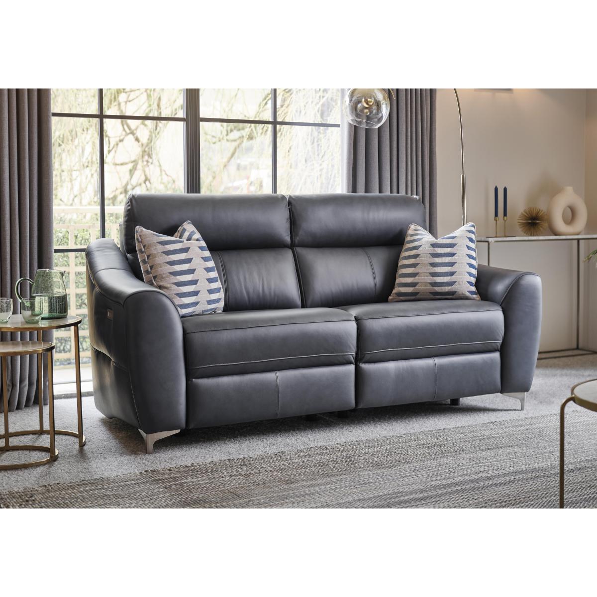 We’re very proud to introduce you to our G Plan Lucca range. Made just for us by G Plan, the collection features this famous brand’s signature approach to comfort alongside contemporary off-the-floor style. Each sofa, armchair and footstool is available in 100% top grain leather and high-quality fabric upholstery, and in a huge choice of colours. And because it’s G Plan, you can look forward to perfectly placed cushioning for back and neck support as well as superior craftsmanship. Make your Lucca sofa or armchair an even more relaxing experience by adding manual or power recliners. Handmade in Britain. Contemporary sofa style plus proper sofa comfort? Yes please. With the G Plan Lucca 3-seater leather sofa you get a sofa that wows as well as G Plan’s famous cushioning and support. Exclusively at Furniture Village. Why you'll love it. G Plan’s legendary approach to comfort meets contemporary sofa style. On-trend off-the-floor look. High back promises wonderful neck and lumbar support. Deep seats for sink-in relaxation. Make it even more comfortable by adding manual or power recliners. Upholstered in 100% top grain leather. Stylish stitching detail. Statement legs in brushed chrome or a choice of wood finishes. Power recliner sofa comes with built-in with USB charging ports. Handcrafted in Britain. Made by G Plan exclusively for Furniture Village. What you need to know. Medium comfort. Fixed foam seat cushions on serpentine spring suspension. Fibre-filled back cushions. Leather has unique marks and characteristics with variation in colour and texture. Smoothing the cushioned top directly after use helps prevent ‘puddling’. Leather softens with use. Please allow time for new recliners to ease. Minor gaps are necessary to ensure ease of recliner motion and may be exaggerated depending on floor type. This sofa arrives in one piece; please ensure sufficient access to your home. The G Plan Lucca collection is also available with fabric upholstery.