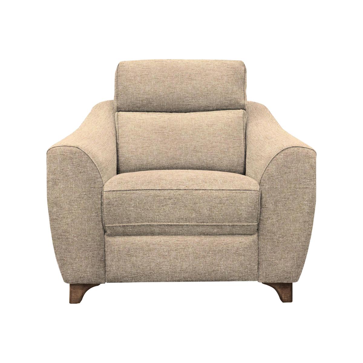 We’re very proud to introduce you to our G Plan Lucca range. Made just for us by G Plan, the collection features this famous brand’s signature approach to comfort alongside contemporary off-the-floor style. Each sofa, armchair and footstool is available in 100% top grain leather and high-quality fabric upholstery, and in a huge choice of colours. And because it’s G Plan, you can look forward to perfectly placed cushioning for back and neck support as well as superior craftsmanship. Make your Lucca sofa or armchair an even more relaxing experience by adding manual or power recliners. Handmade in Britain.. Comfort or style? It’s a win-win with the G Plan Lucca fabric armchair. Handcrafted just for us by G Plan, this contemporary armchair with optional power or manual recliner promises G Plan’s signature support. Why you'll love it G Plan’s legendary approach to comfort meets contemporary sofa style. On-trend off-the-floor look. High back promises wonderful neck and lumbar support. Deep seats for sink-in relaxation. Make it even more comfortable by adding a manual or power recliner. Stylish stitching detail. Statement legs in brushed chrome or a choice of wood finishes. Power recliner armchair comes with built-in with USB charging port. Handcrafted in Britain. Made by G Plan exclusively for Furniture Village. What you need to know Medium comfort. Fixed foam seat cushion on serpentine spring suspension. Fibre-filled back cushion. Clean weekly using a soft brush or vacuum with the curtain attachment. Professional cleaning advised for oil- and grease-based stains. Some fabrics can show wear on areas of more use or in direct sunlight. Please allow time for new recliners to ease. Minor gaps are necessary to ensure ease of recliner motion and may be exaggerated depending on floor type. The G Plan Lucca collection is also available with leather upholstery.