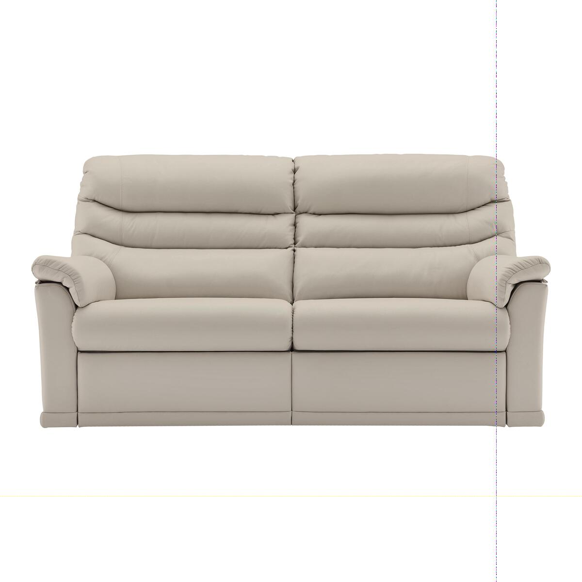 You really can have it all. The G Plan Malvern collection offers good looks and superior comfort. The high backs, luxurious cushioning and excellent lumbar support invite you to sit down and relax in style. There’s even a lift and rise chair. Handcrafted with pride in the UK. Outstanding lumbar support. Upholstered in a high-quality leather. Reversible cold cure foam seat cushion. Sit back and relax in luxuriously cushioned comfort with the G Plan Malvern 2 Cushion 3 Seater Leather Recliner Sofa. Sumptuous, moulded cushions offer outstanding lumbar support, complementing a split back design and soft, high-quality leather upholstery for a truly comfortable sit. Choose a static design or opt for a power or manual recliner to take your comfort to a whole new level. Put your feet up at the end of a long day and indulge in the cold cure foam seat cushions and fibre filled back cushions, offering an outstanding level of lumbar support. G Plan’s designs showcase the best of the British craftsmanship, using the finest materials and achieving the highest level of comfort. Available in a fantastic selection of colours. The G Plan Malvern 3 Seater 2 Cushion Leather Recliner Sofa is part of the sumptuously comfortable Malvern collection. Natural leather has unique marks and characteristics with variance in colour and texture, and softens with use. Smoothing the cushioned top prevents ‘puddling’.