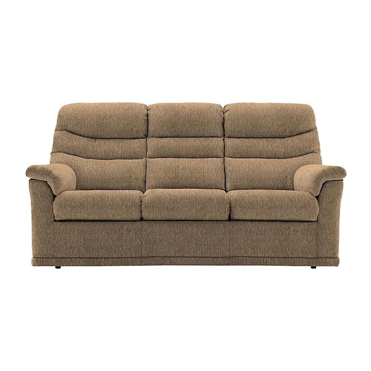 Stock: R280I97850. 5 Please note: this clearance item has limited stock and is subject to availability. Relax on the wonderfully comfortable seats of this lovely G Plan Malvern three- seater sofa with extra lumbar support. Why you'll love it Classic G Plan style, superb G Plan comfort. Fabulous cushioning with the extra lumbar support your back will love. This sofas high back, upright seat and padded arms seal the deal. Available as a non- recliningoption This lovely sofa comes in beautiful fabrics. Handcrafted by G Plan in the UK. This 3- seater fabric sofa is part of the G Plan Malvern range. What you need to know Medium comfort level. Seat suspension: serpentine springs. Seat cushioning: foam. Seat cushions are reversible only on the non- recliner version of this sofa. Back suspension: webbing. Back cushioning: fibre. Back cushions are reversible only on the non- recliner version of this sofa. Arm cushioning: fibre. Some fabrics can show wear on areas of more use or in direct sunlight. Clean regularly using a soft brush or vacuum with the curtain attachment. Deal with any spills promptly. Professional cleaning advised for oil- and grease- based stains. Please read our upholstery care guide for more advice.
