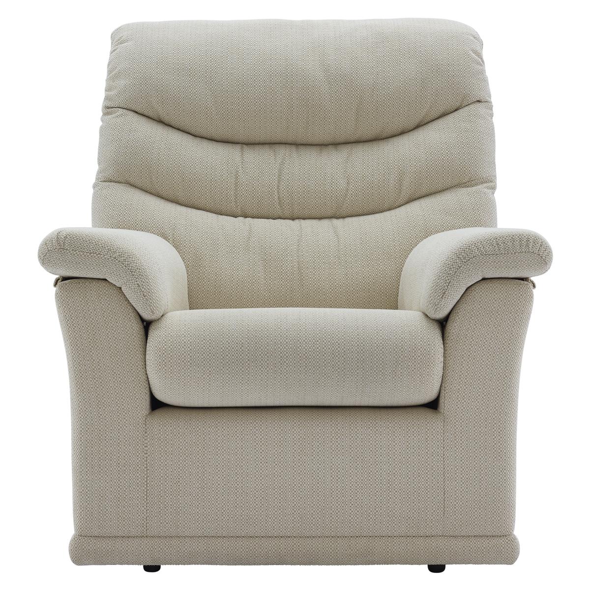 The Malvern Static Chair offers a classic, elegant style with signature G Plan comfort. Generous high backed and upright sit provides the ultimate support whilst gentle curved details on the arm provides softness. As always with G Plan, you can choose from a range of beautiful fabrics and leathers to suit your style. Pieces are handcrafted in the UK with a 25 year timber frame and frame construction guarantee. Features: Static pieces feature reversible seat cushions in fabric covers. Malvern offers a classic, elegant style with signature G Plan comfort. Generous high backed and upright sit provides the ultimate support. Gentle curved details on the arm provides softness. Choose from a range of beautiful fabrics and leathers to suit your style. Handy storage footstool option available. Handcrafted in the UK with a 25 year timber frame & frame construction guarantee. Chair Dimensions: Height - 105.1 cm Width - 94 cm Depth - 96.5 cm Seat Height - 51cm Seat Width - 45cm Seat Depth - 51cm Please note: Scatter cushions are available at an additional cost. All measurements are approximate and relate to the overall size of the item including soft arm cushions where fitted and back cushions. All screens vary in colour reproduction and whilst every effort has been made to display the colour as accurately as possible it is for guidance only.