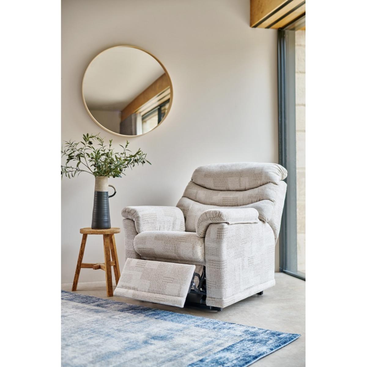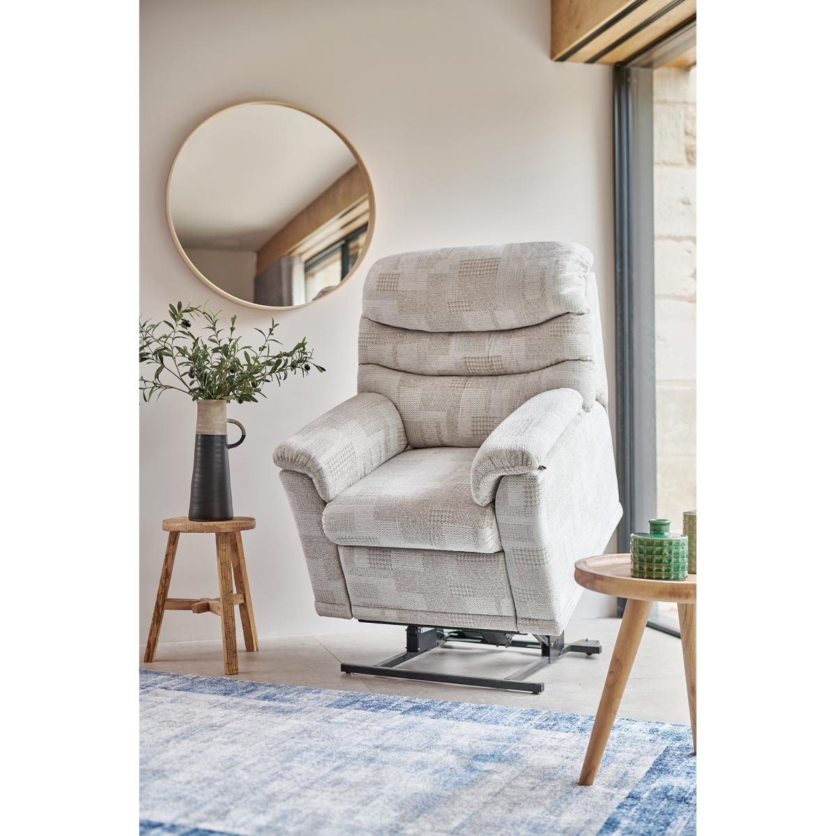 The Malvern Dual Elevate Lift & Rise Chair offers a classic, elegant style with signature G Plan comfort. Generous high backed and upright sit provides the ultimate support whilst gentle curved details on the arm provides softness. As always with G Plan, you can choose from a range of beautiful fabrics and leathers to suit your style. Pieces are handcrafted in the UK with a 25 year timber frame and frame construction guarantee. This advanced chair combines the comfort of a recliner with the functionality of a lift mechanism, smoothly assisting you from a seated to a standing position at the touch of a button. Crafted with a strong and durable frame, it features plush cushioning, a supportive backrest, and padded armrests for maximum comfort. The chair offers multiple reclining positions, allowing you to relax, recline, or even sleep in ultimate comfort. Upholstered in high-quality fabric or leather, and available in a variety of colors, this riser recliner chair not only provides practical support but also adds a touch of elegance to your living space. Ideal for individuals with mobility challenges, it’s the perfect blend of comfort, functionality, and style. Features: Independent backrest and footrest put you in control of your comfort. Malvern offers a classic, elegant style with signature G Plan comfort. Generous high backed and upright sit provides the ultimate support. Gentle curved details on the arm provides softness. Choose from a range of beautiful fabrics and leathers to suit your style. Handcrafted in the UK with a 25 year timber frame & frame construction guarantee. Small Chair Dimensions: Height - 109.2cm Width - 87.6cm Depth - 96.5cm Depth when reclined - 170cm Seat Height - 51cm Seat Width - 45cm Seat Depth - 51cm Arm Height - 66cm Standard Chair Dimensions: Height - 109.2cm Width - 94cm Depth - 96.5cm Depth when reclined - 170cm Seat Height - 51cm Seat Width - 45cm Seat Depth - 51cm Arm Height - 66cm Please note: Recliner furniture requires room to recline. Scatter cushions are available at an additional cost. All measurements are approximate and relate to the overall size of the item including soft arm cushions where fitted and back cushions. All screens vary in colour reproduction and whilst every effort has been made to display the colour as accurately as possible it is for guidance only.