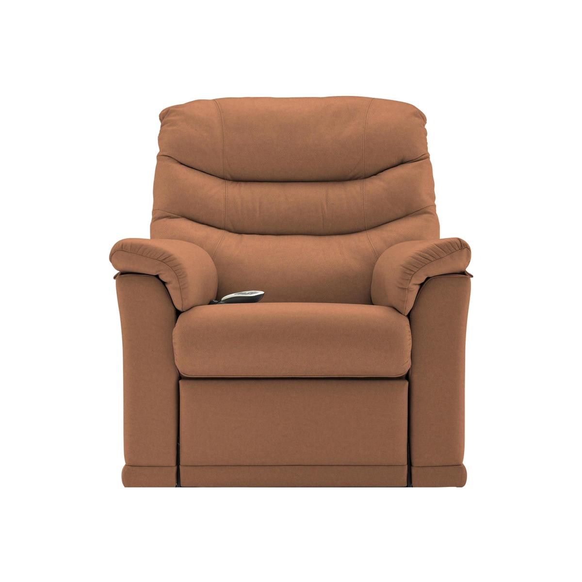 You really can have it all. The G Plan Malvern collection offers good looks and superior comfort. The high backs, luxurious cushioning and excellent lumbar support invite you to sit down and relax in style. There’s even a lift and rise chair. Handcrafted with pride in the UK.. Outstanding lumbar support. Upholstered in a high-quality leather. Reversible cold cure foam seat cushionTake your comfort to a whole new level with the G Plan Malvern Leather Rise and Recline Armchair. Featuring indulgently comfortable cold cure foam seat cushions and fibre filled back cushions, it offers an outstanding level of lumbar support with deep, moulded cushioning you’ll love sinking in to. High-quality leather upholstery creates a soft surface that hugs your body in total comfort in tandem with its softly curved design. Its motorised lift and rise action offers an easy and safe way of getting to your feet, without compromising on style or comfort. And its dual action means you can fine tune the comfy backrest and footrest to your favourite position. This well-designed armchair offers the luxury quality and British craftsmanship G Plan is famous for. The G Plan Malvern Leather Rise and Recline Armchair is part of the sumptuously comfortable Malvern collection. Natural leather has unique marks and characteristics with variance in colour and texture, and softens with use. Smoothing the cushioned top prevents ‘puddling’..