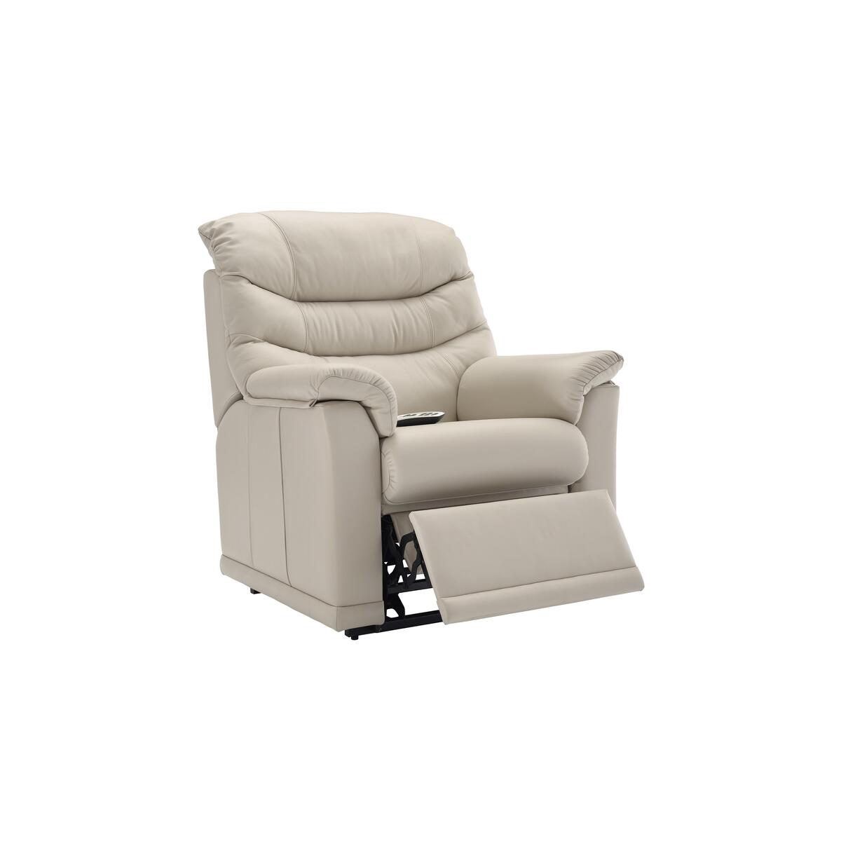 You really can have it all. The G Plan Malvern collection offers good looks and superior comfort. The high backs, luxurious cushioning and excellent lumbar support invite you to sit down and relax in style. There’s even a lift and rise chair. Handcrafted with pride in the UK. Outstanding lumbar support. Upholstered in a high-quality leather. Reversible cold cure foam seat cushion. Take your comfort to a whole new level with the G Plan Malvern Leather Rise and Recline Armchair. Featuring indulgently comfortable cold cure foam seat cushions and fibre filled back cushions, it offers an outstanding level of lumbar support with deep, moulded cushioning you’ll love sinking in to. High-quality leather upholstery creates a soft surface that hugs your body in total comfort in tandem with its softly curved design. Its motorised lift and rise action offers an easy and safe way of getting to your feet, without compromising on style or comfort. And its dual action means you can fine tune the comfy backrest and footrest to your favourite position. This well-designed armchair offers the luxury quality and British craftsmanship G Plan is famous for. The G Plan Malvern Leather Rise and Recline Armchair is part of the sumptuously comfortable Malvern collection. Natural leather has unique marks and characteristics with variance in colour and texture, and softens with use. Smoothing the cushioned top prevents ‘puddling’.