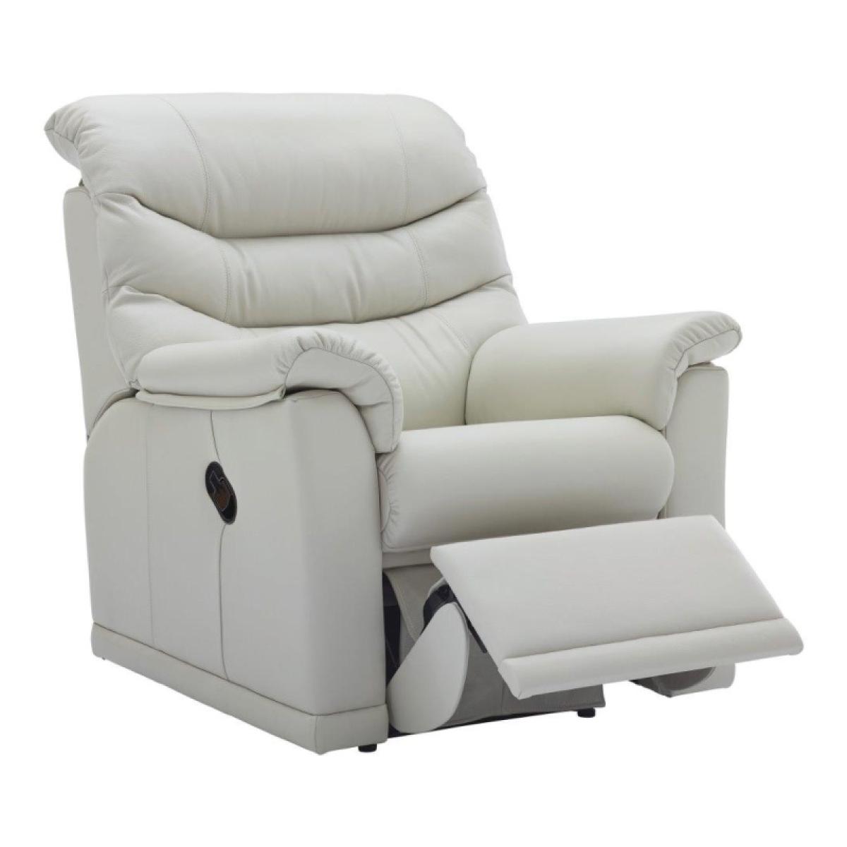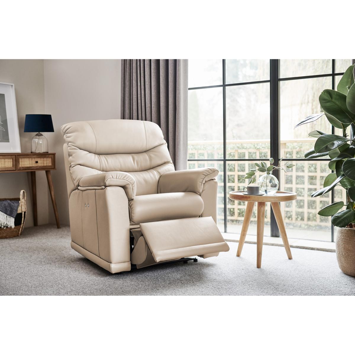 The Malvern Recliner Chair offers a classic, elegant style with signature G Plan comfort. Generous high backed and upright sit provides the ultimate support whilst gentle curved details on the arm provides softness. With manual or power recliner options available for the ultimate relaxation. As always with G Plan, you can choose from a range of beautiful fabrics and leathers to suit your style. Pieces are handcrafted in the UK with a 25 year timber frame and frame construction guarantee. Built with a robust frame and plush cushioning, this recliner features a smooth, reclining mechanism that effortlessly adjusts to your preferred angle, allowing you to relax fully. Whether you're unwinding with a book, watching TV, or taking a nap, this recliner chair is the perfect addition to your living room or den, combining comfort, functionality, and timeless design. Features: Manual or power recliner options available for the ultimate relaxation Malvern offers a classic, elegant style with signature G Plan comfort. Generous high backed and upright sit provides the ultimate support. Gentle curved details on the arm provides softness. Choose from a range of beautiful fabrics and leathers to suit your style. Handcrafted in the UK with a 25 year timber frame & frame construction guarantee. Recliner Chair Dimensions: Height - 106.4cm Width - 94cm Depth - 96.5cm Depth when reclined - 170cm Seat Height - 51cm Seat Width - 45cm Seat Depth - 51cm Arm Height - 66cm Please note: Recliner furniture requires room to recline. Scatter cushions are available at an additional cost. All measurements are approximate and relate to the overall size of the item including soft arm cushions where fitted and back cushions. All screens vary in colour reproduction and whilst every effort has been made to display the colour as accurately as possible it is for guidance only.